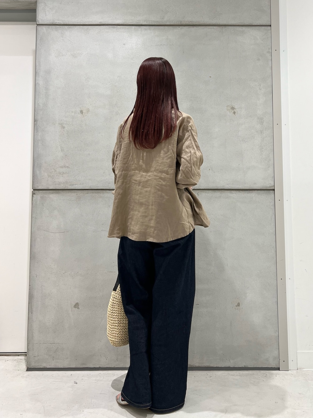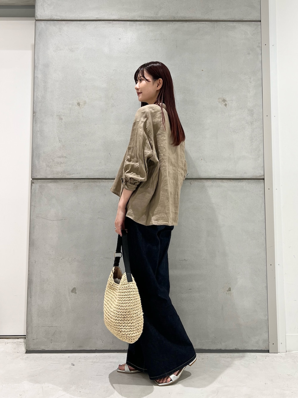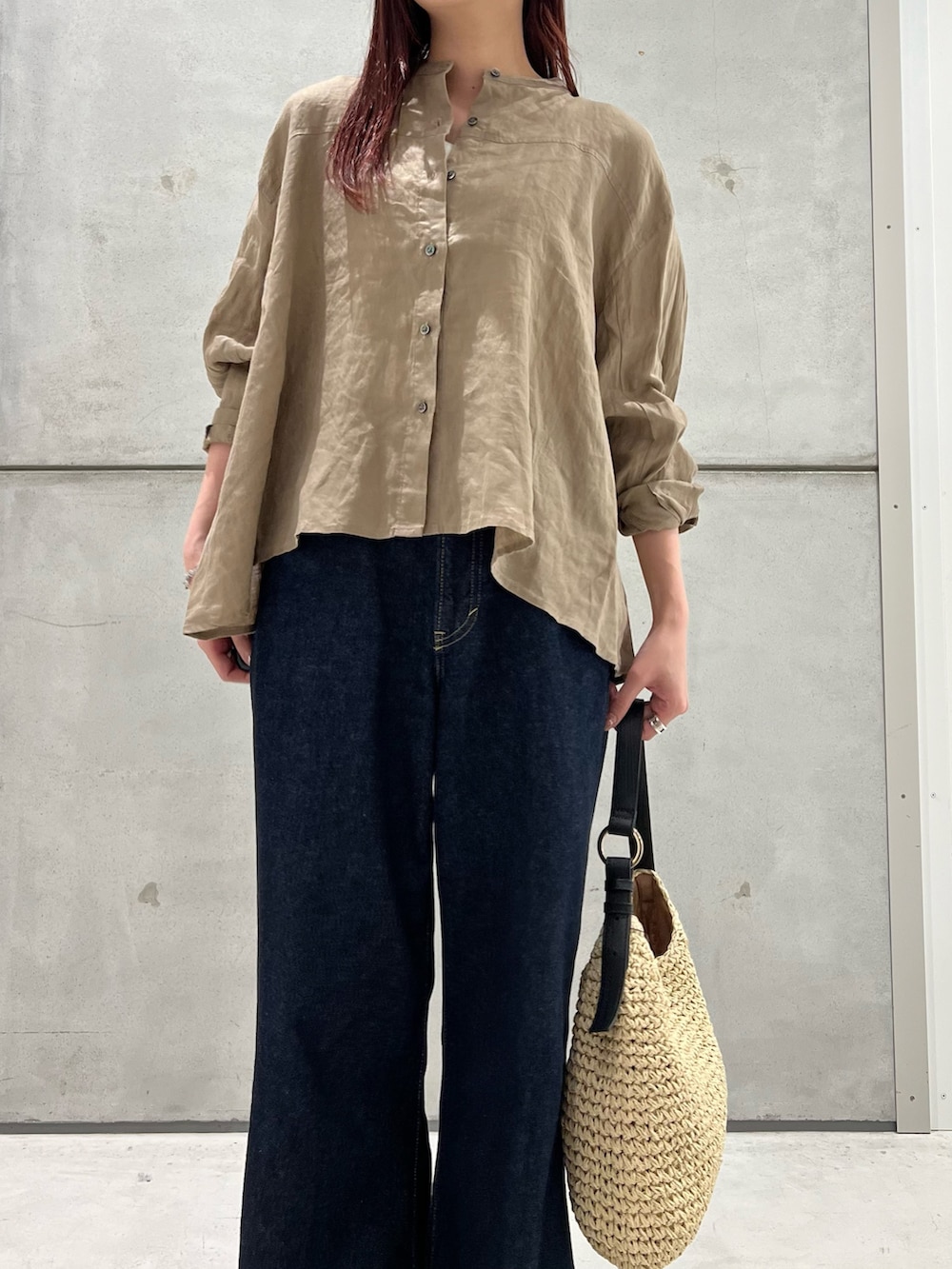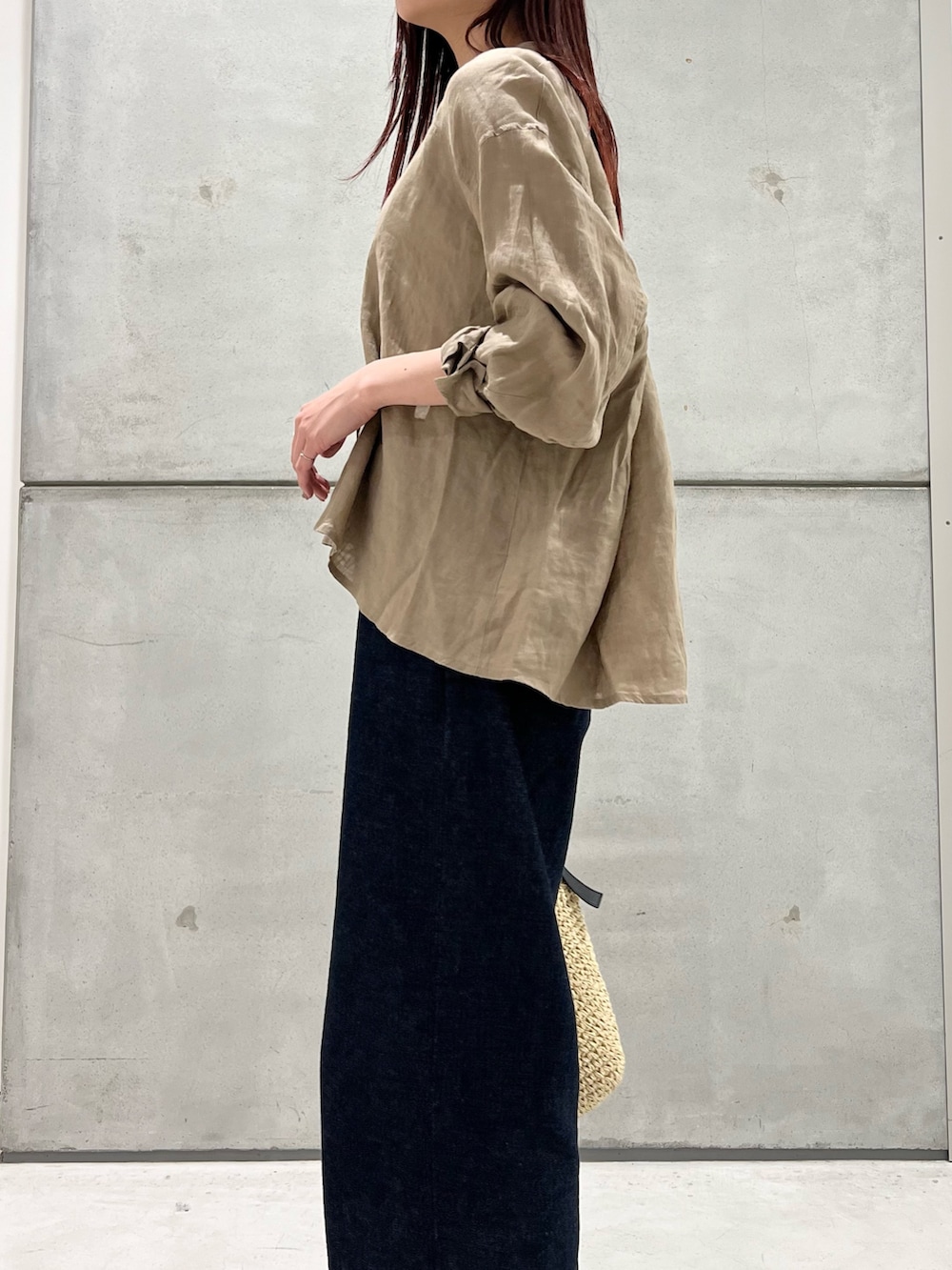 重たく見えるデニムをリネンと合わせることで