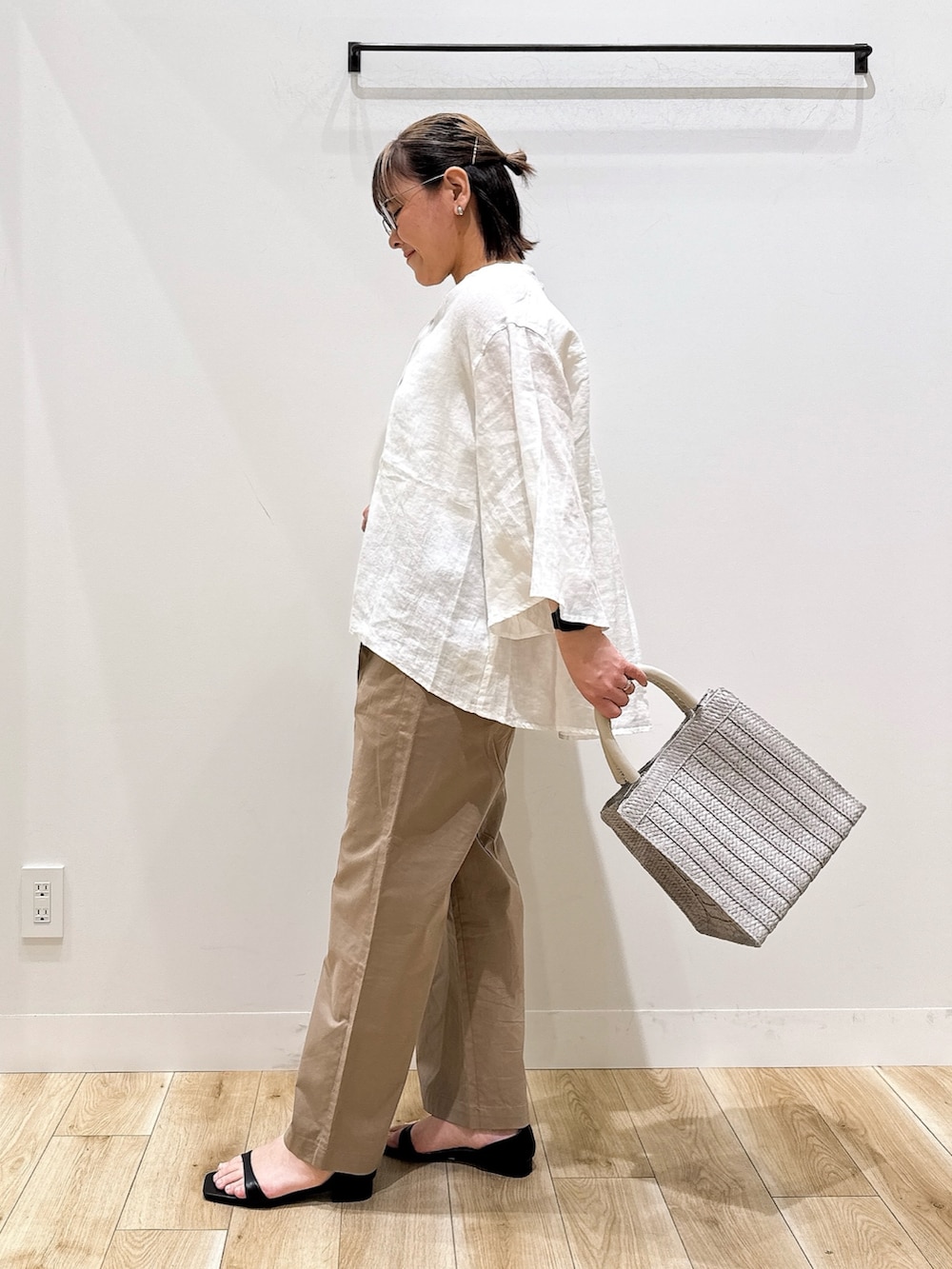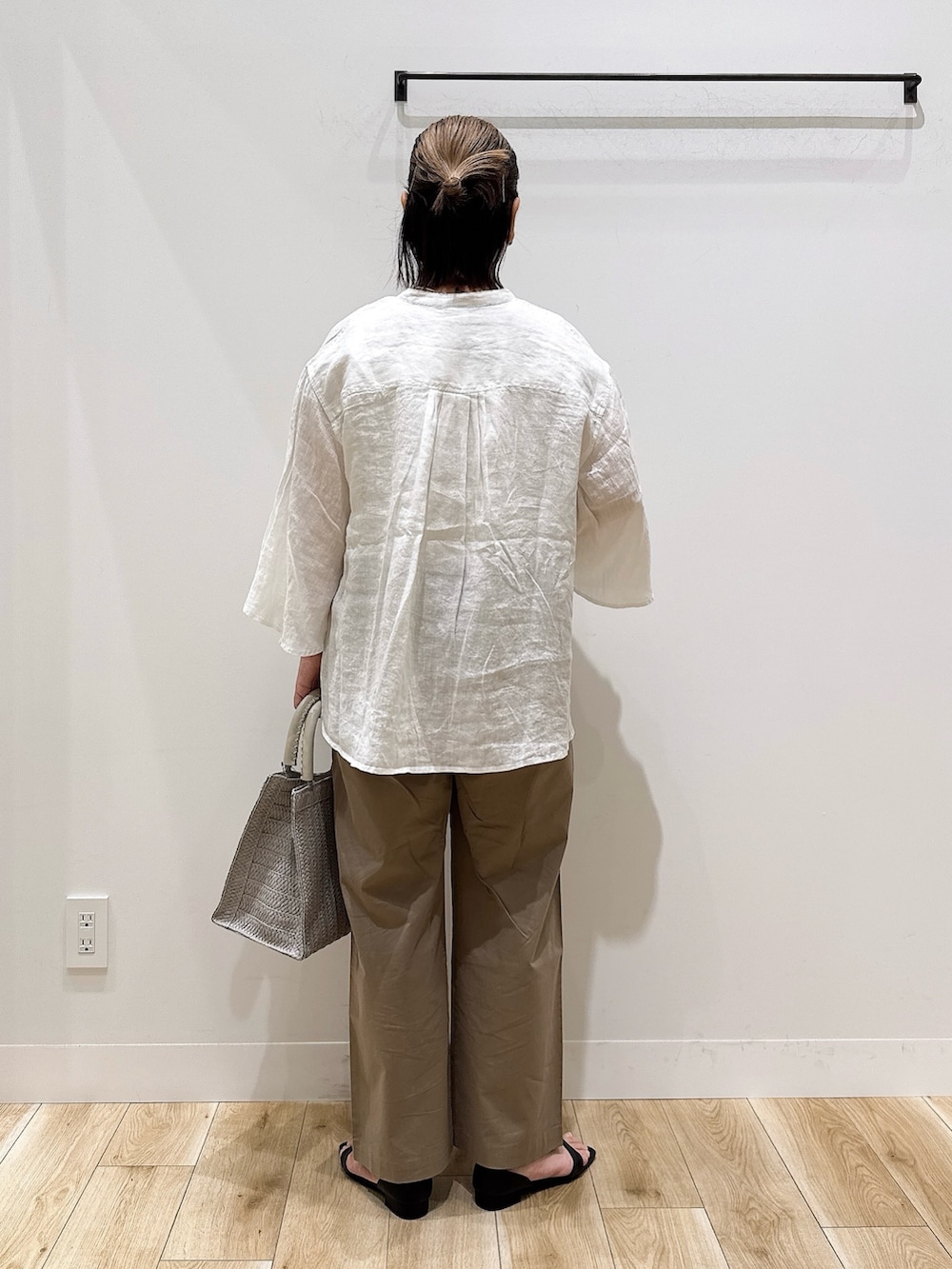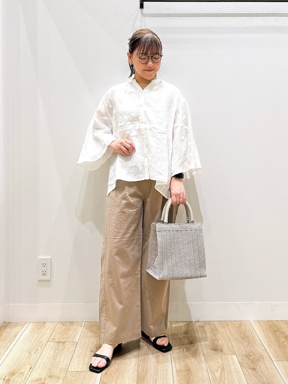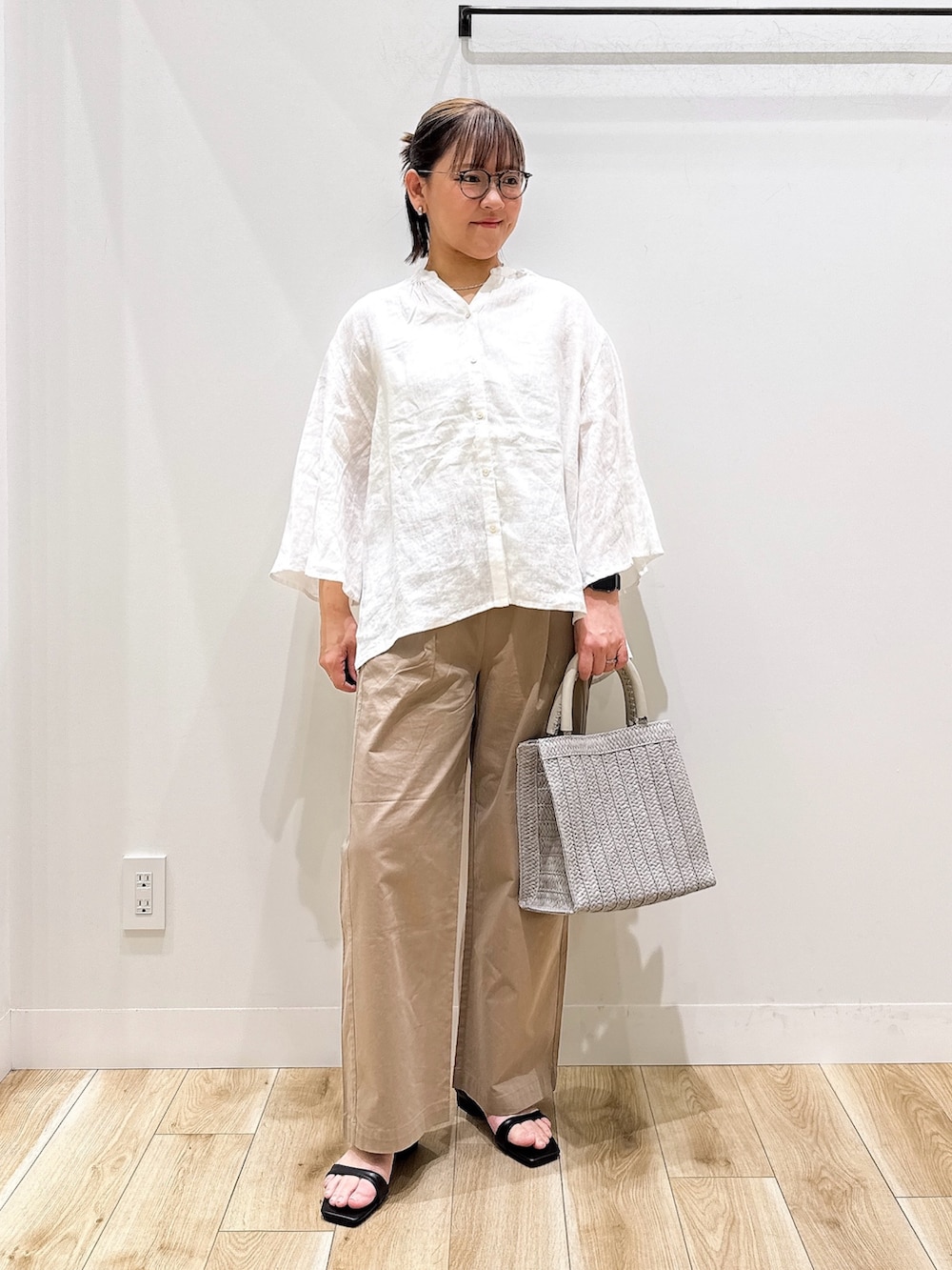 ブラウスはリネン素材でとても涼しく