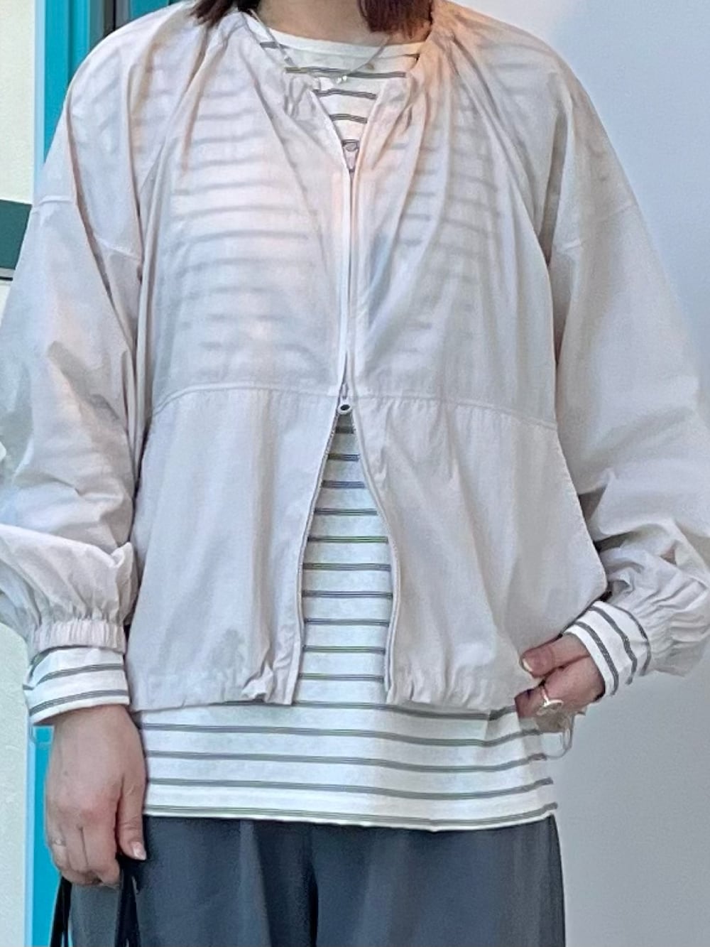 ほんのり透ける素材で、インナーのボーダーがさりげなく見えるのも可愛いポイント。
