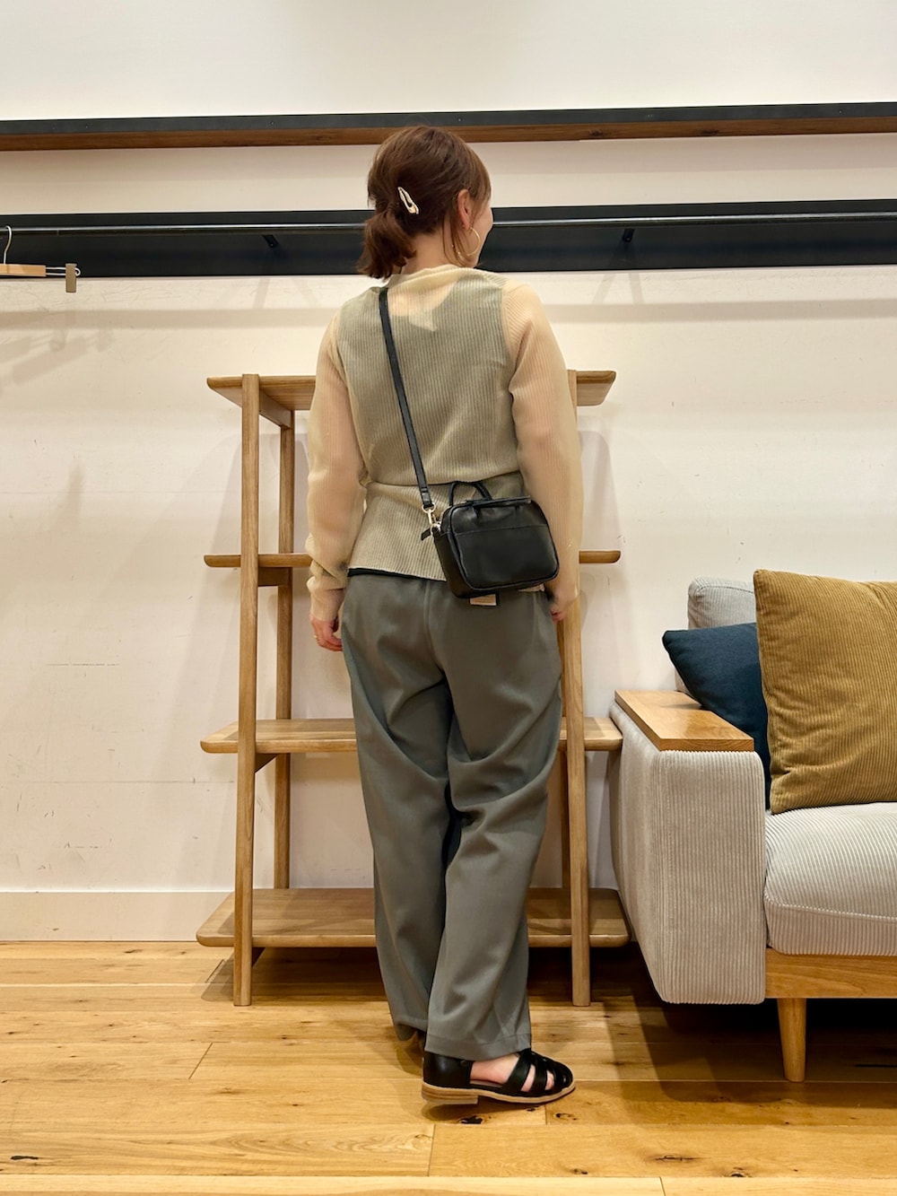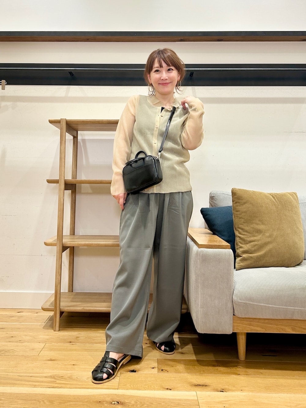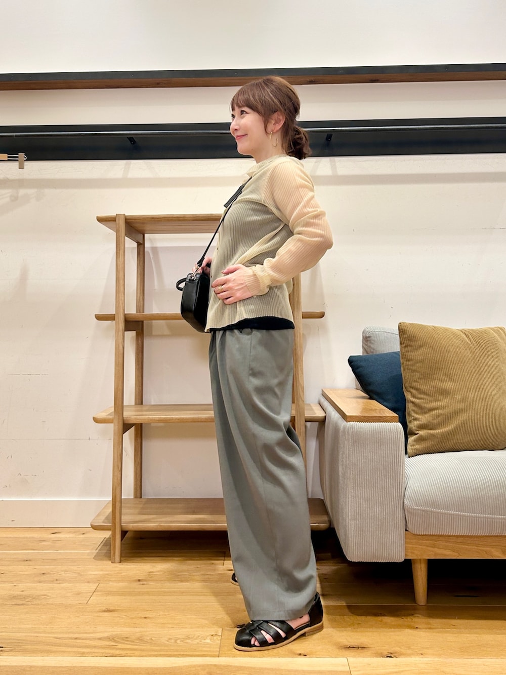 ボタンを留めてトップスっぽく着ても、前を開けてラフに羽織ってもバランスよく決まります。