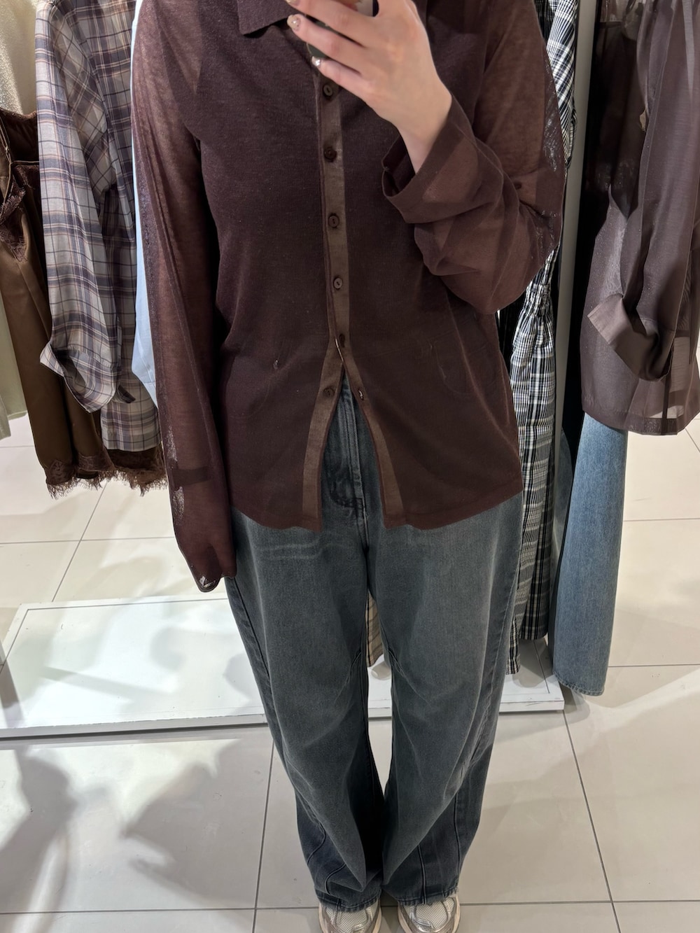 『洗濯可/接触冷感』シアーニットシャツカーディガン