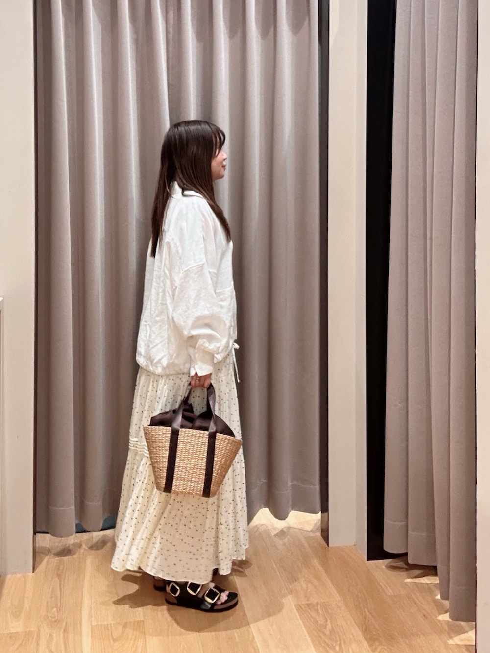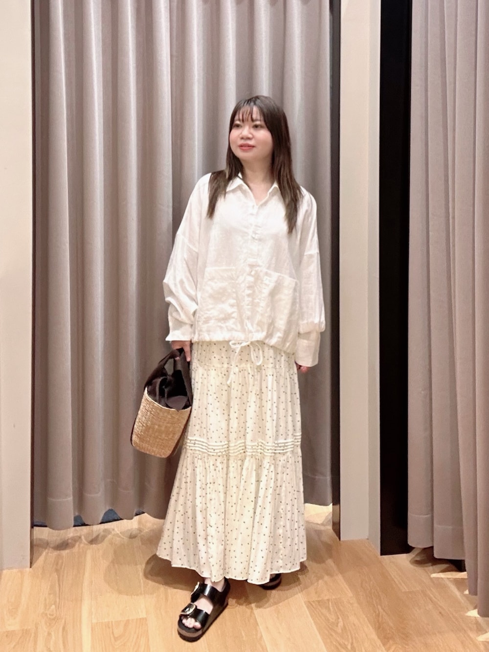 スカートはドット柄がさりげなくオールシーズン着回せるティアードスカート。