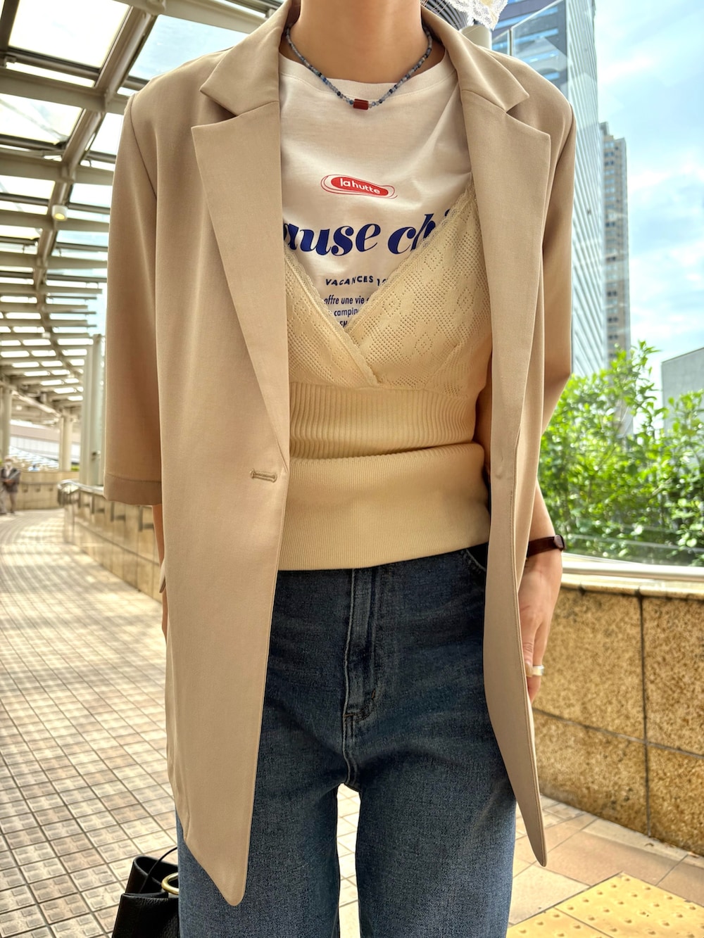 中に半袖Tを着ても見えないのが嬉しいです◎