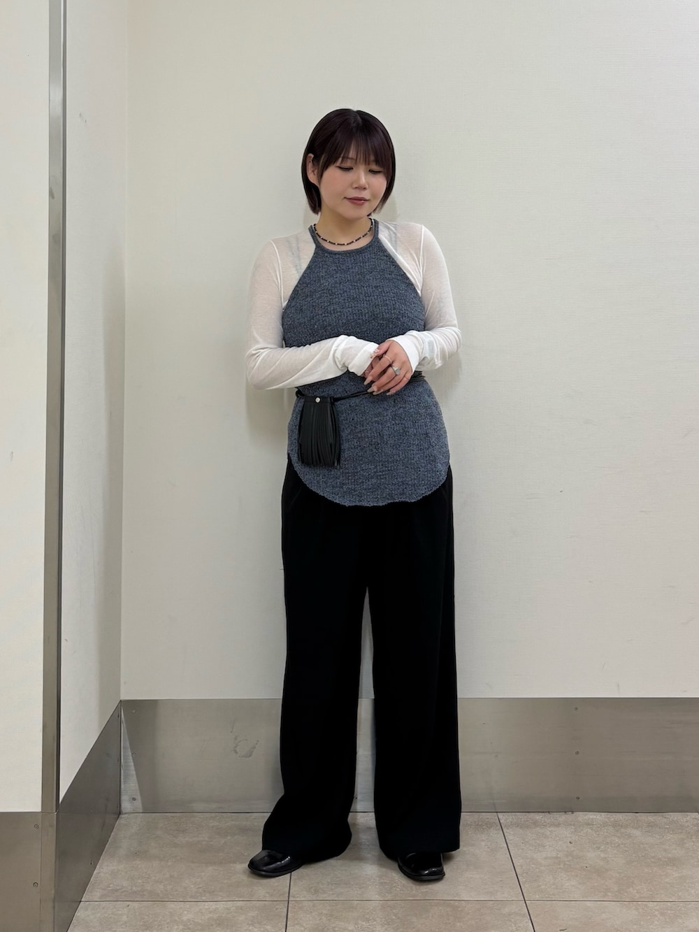 ・シルエットとコーディネートにメリハリを付けるためにウエストポーチでアクセントをプラス.ᐟ.ᐟ.ᐟ