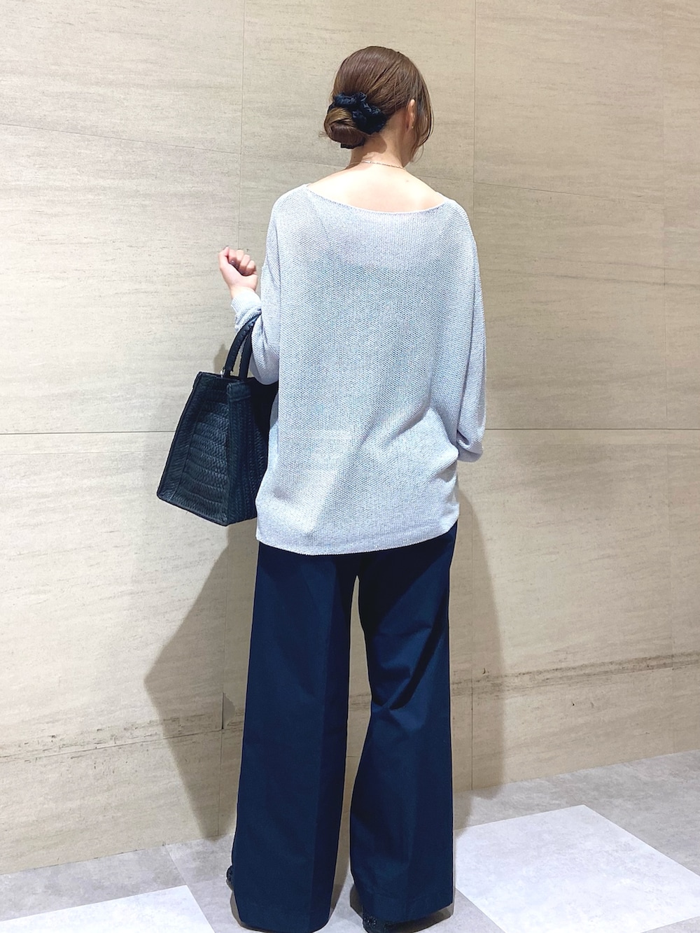 同系色のネイビーと合わせて大人カジュアルに。