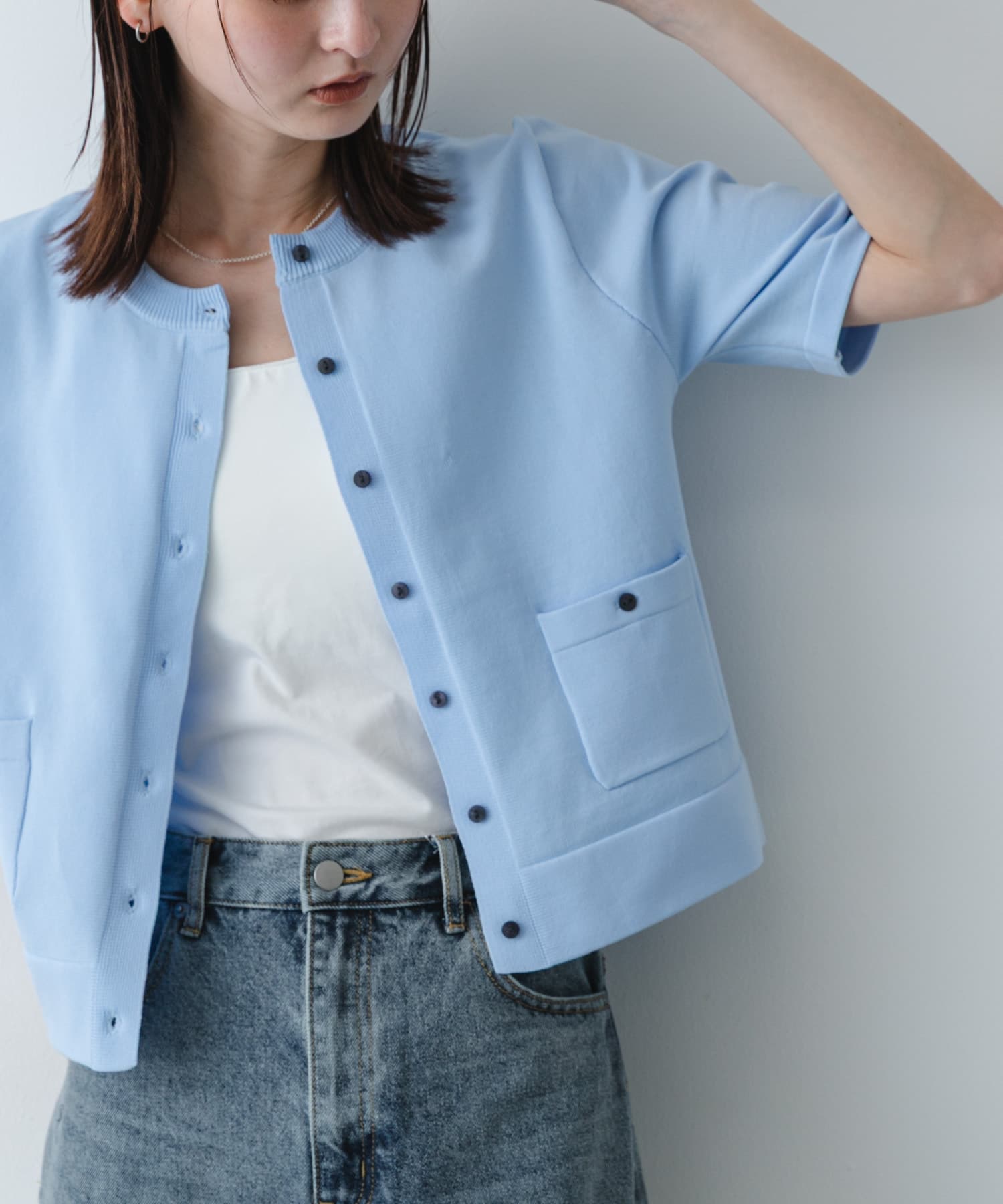 SENSE OF PLACE『洗濯可』ポケットツキハーフスリーブカーディガン- カラー: