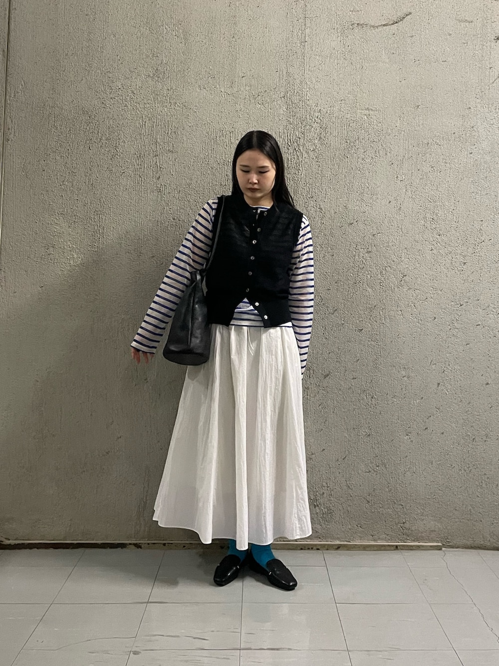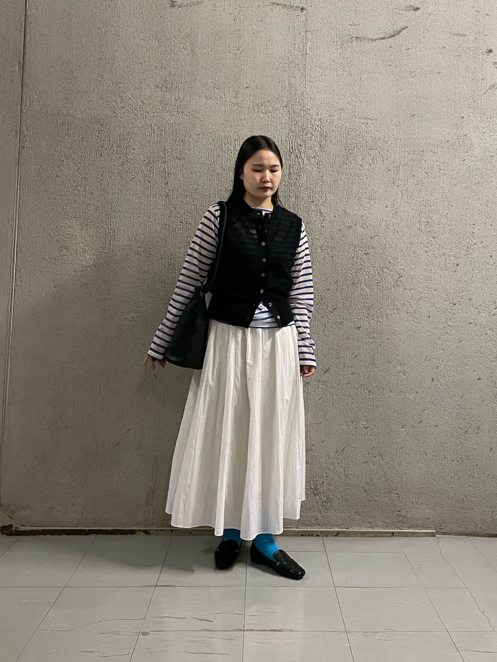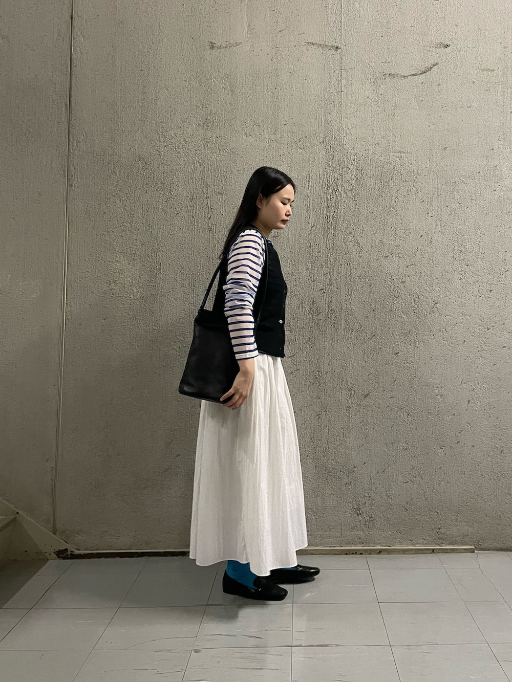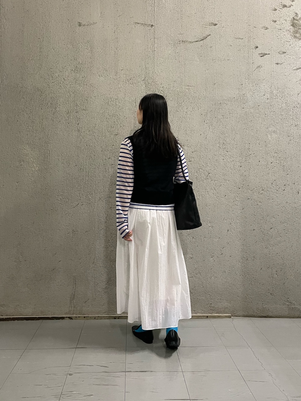 足元のブルーでさりげなくカラーを拾ったのもポイントです🔷