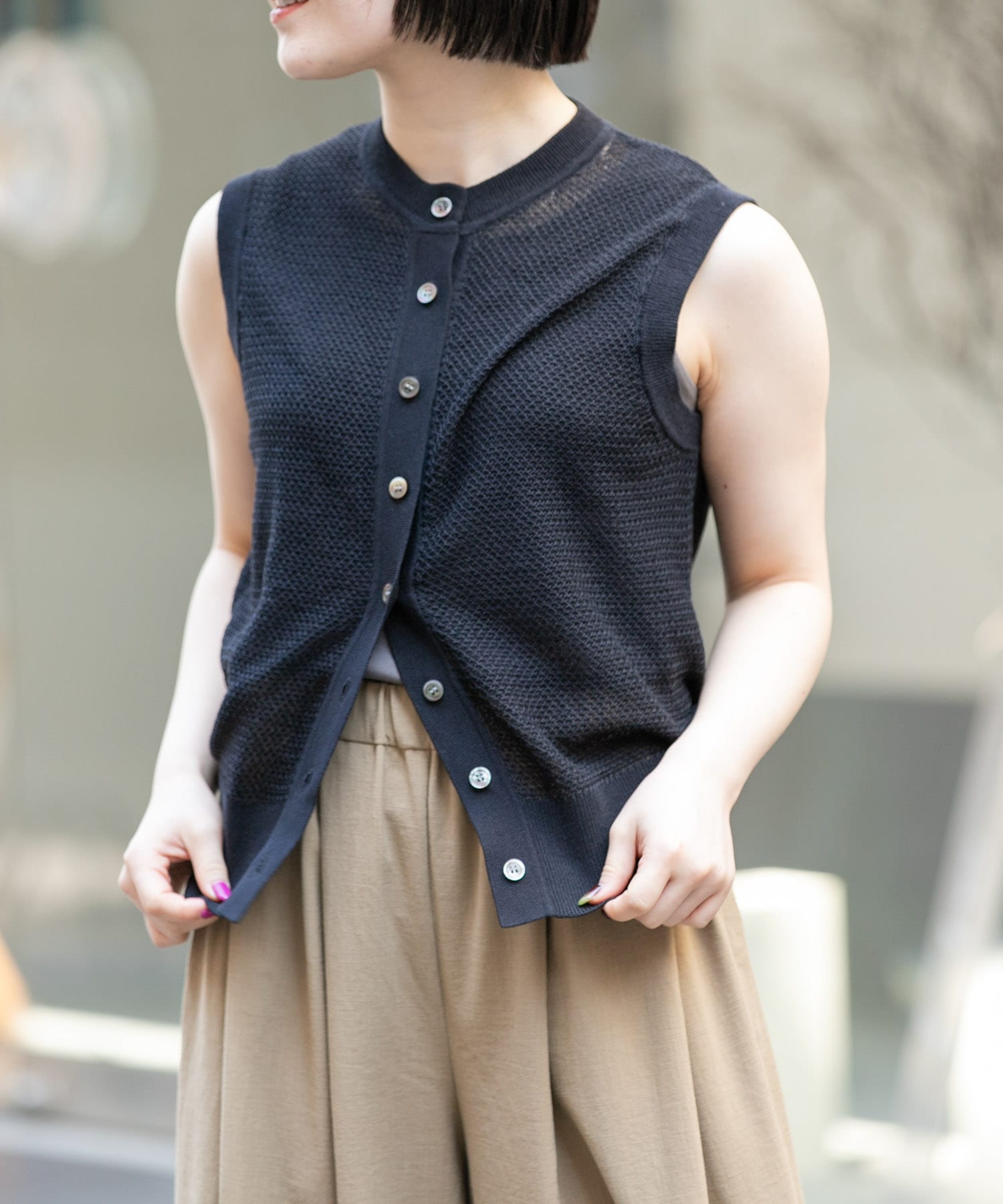 FORK&SPOON フロントボタンニットベスト