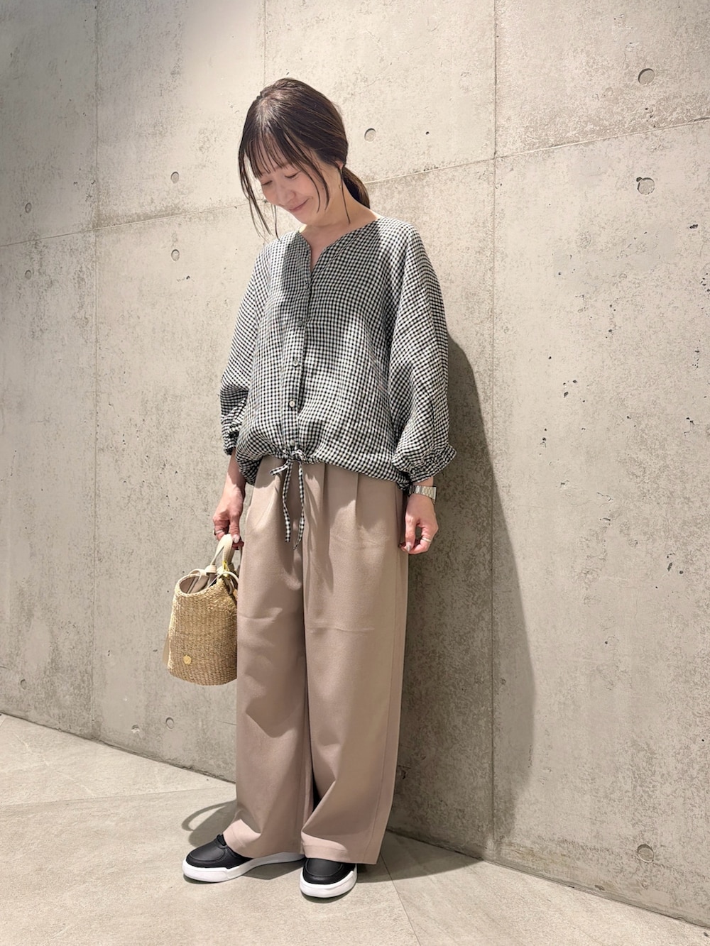 今回は、シンプルなワイドパンツと合わせた、大人カジュアルコーディネートです。