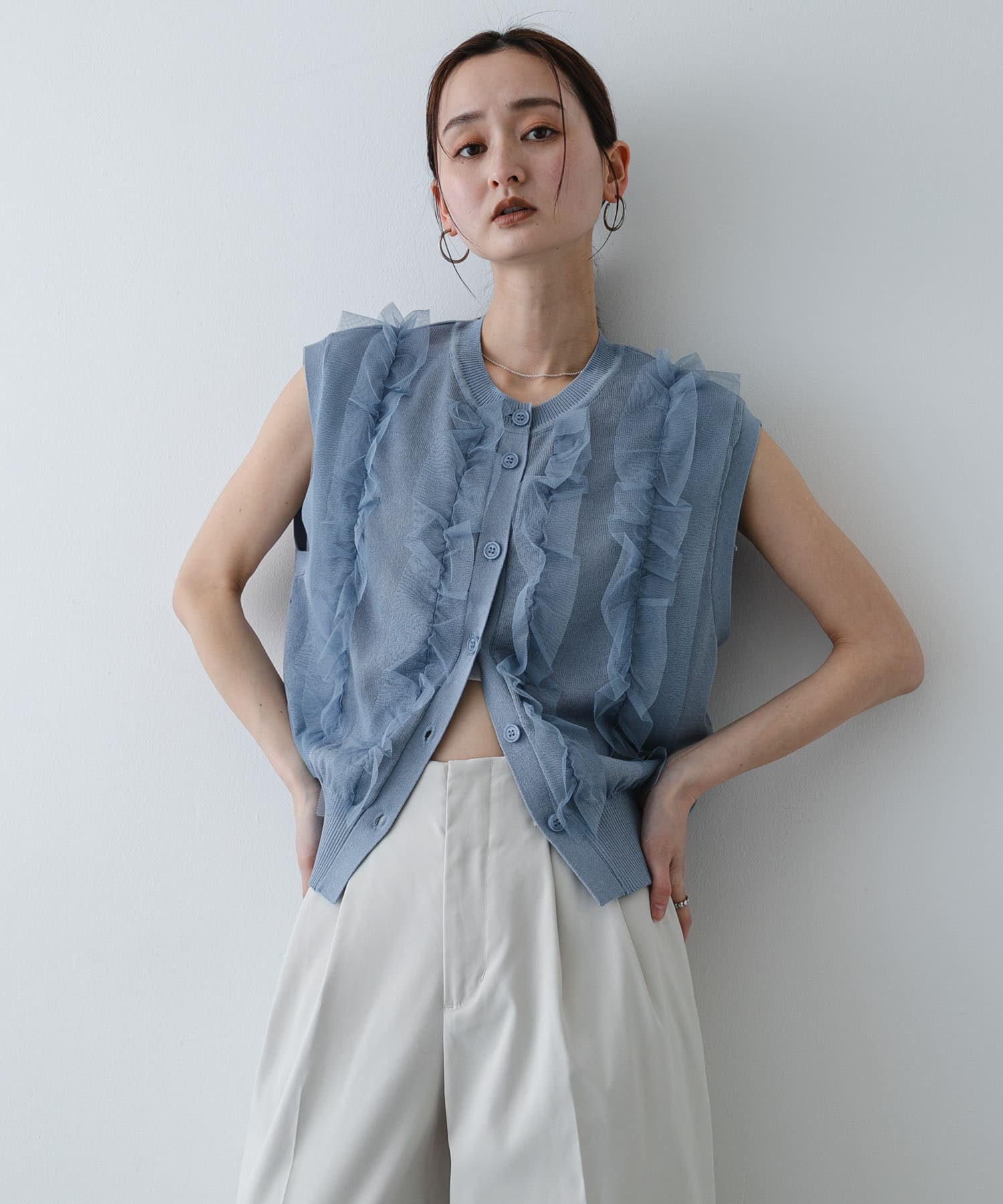 SENSE OF PLACE『洗濯可』チュールフリルニットベスト- カラー: