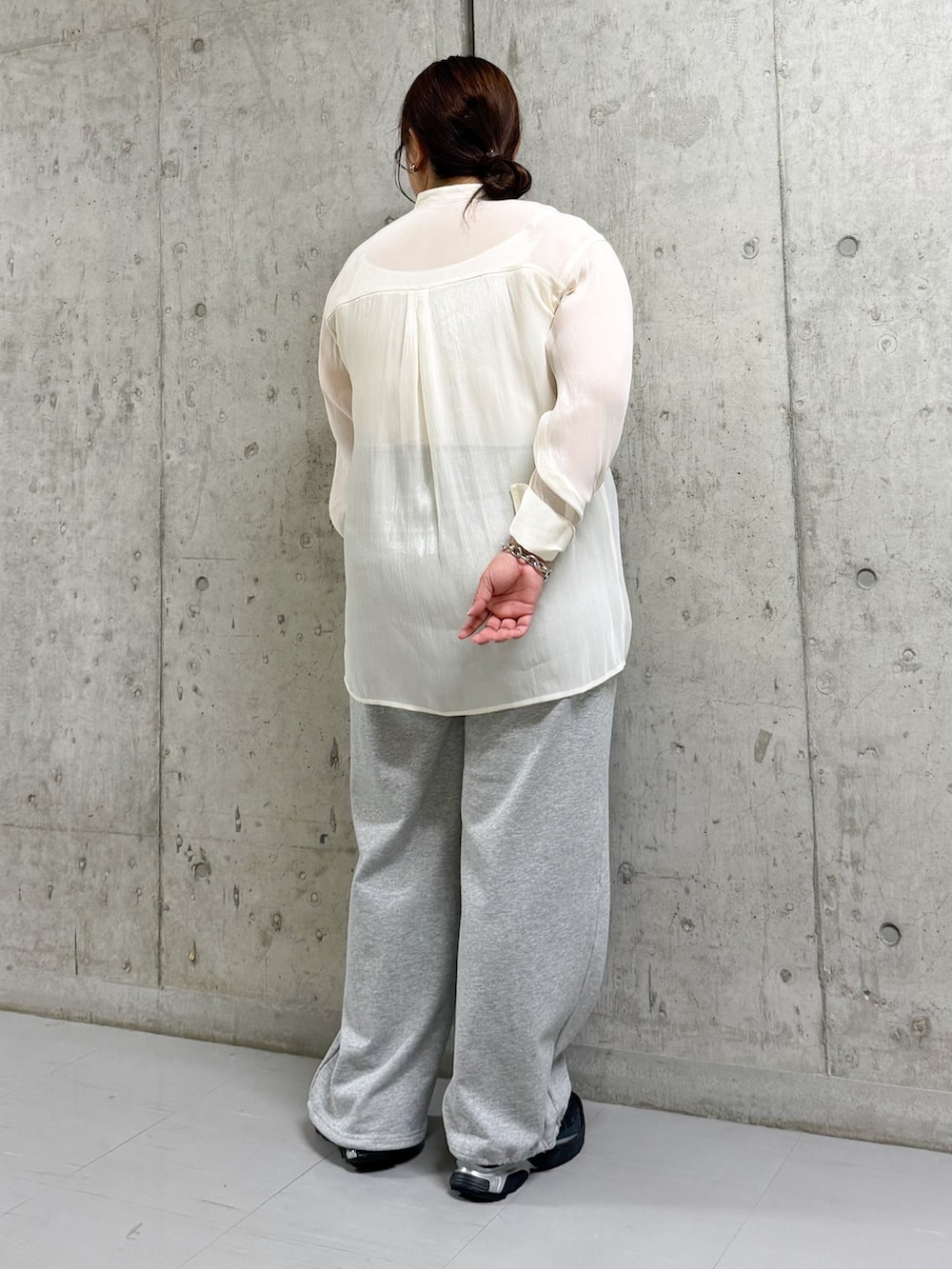 シャツは光沢感とシアー感が可愛くて◎