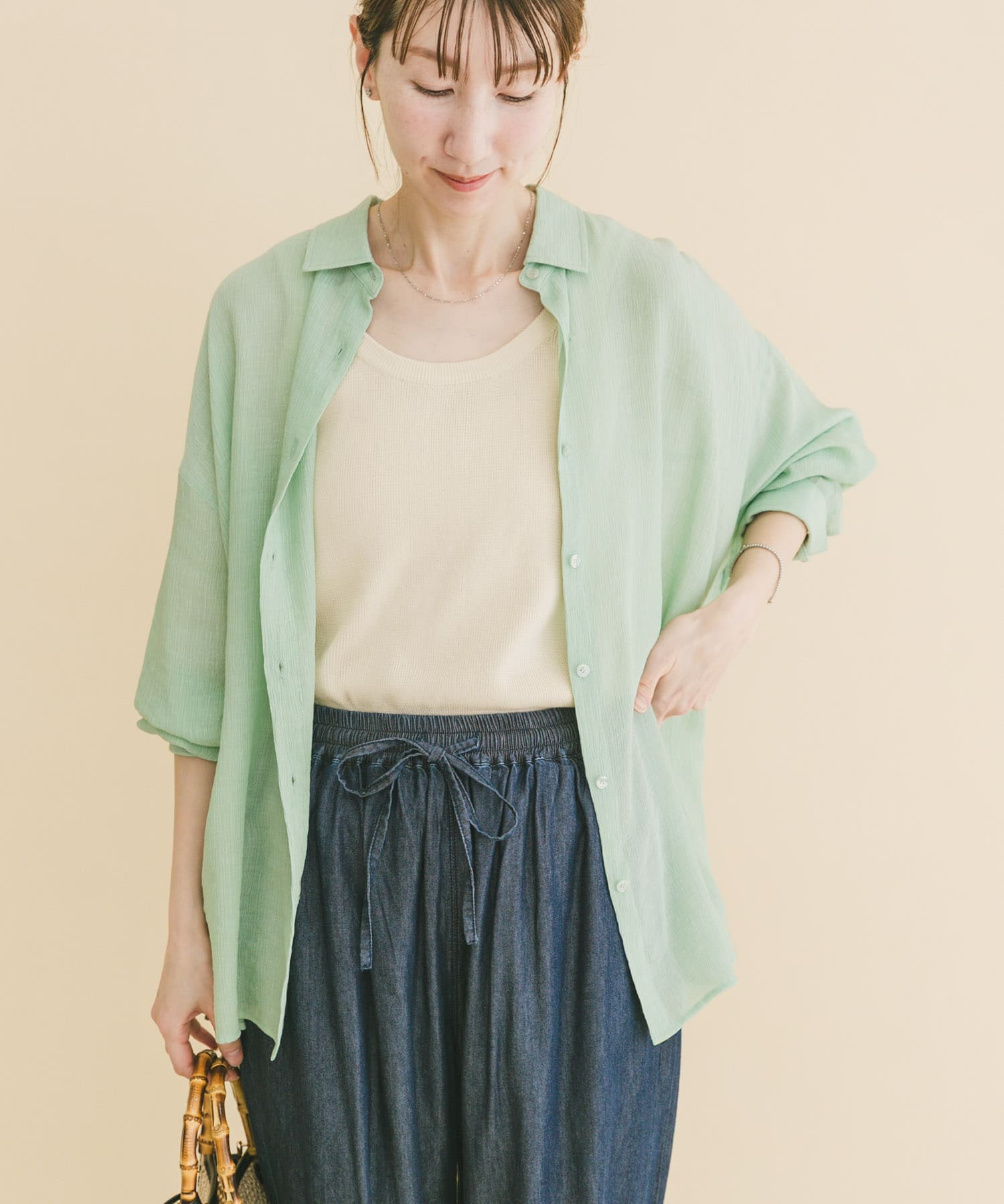 見せキャミで可愛い着こなしも、ボタン閉じて大人な着こなしも、どちらも行けちゃいます♪