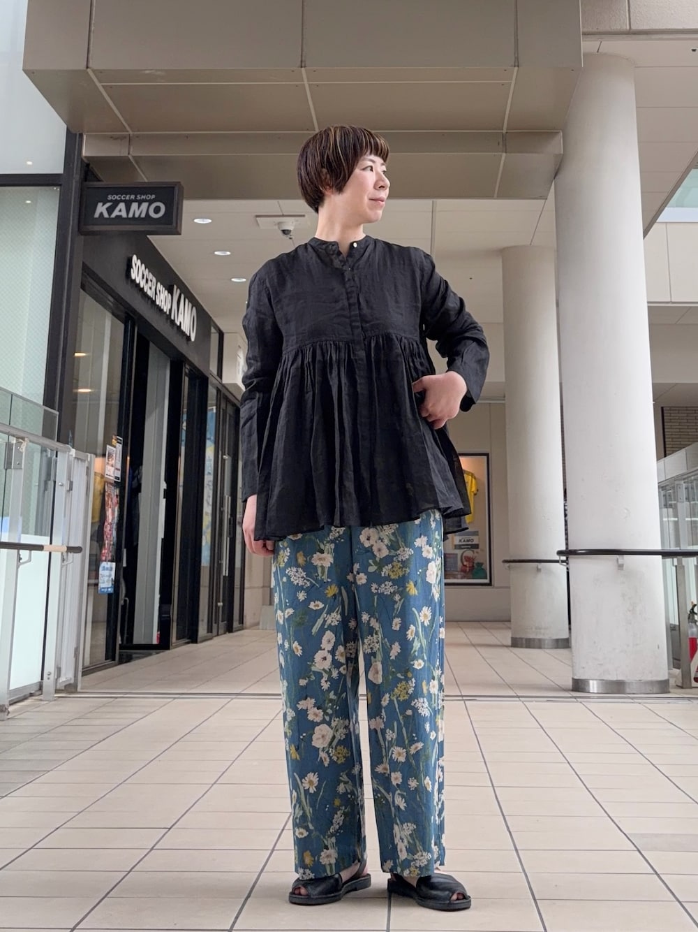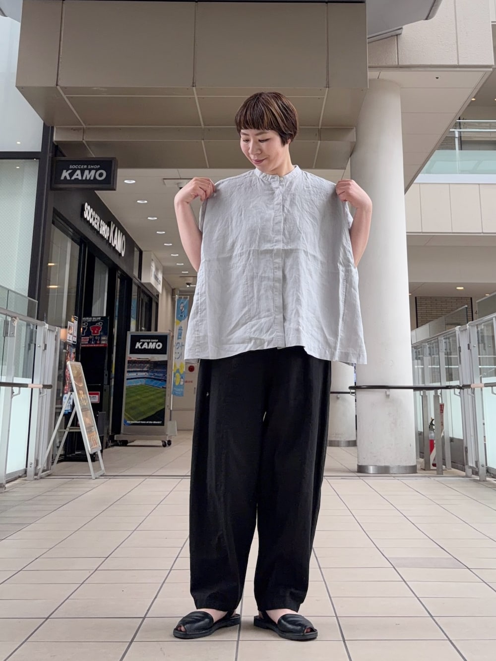 楽に着用でき、夏場も活躍する素材です。後ろのリボンを結ぶ位置で丈やフィット感を調整できるので嬉しいです◎