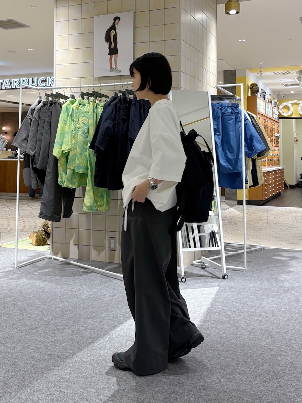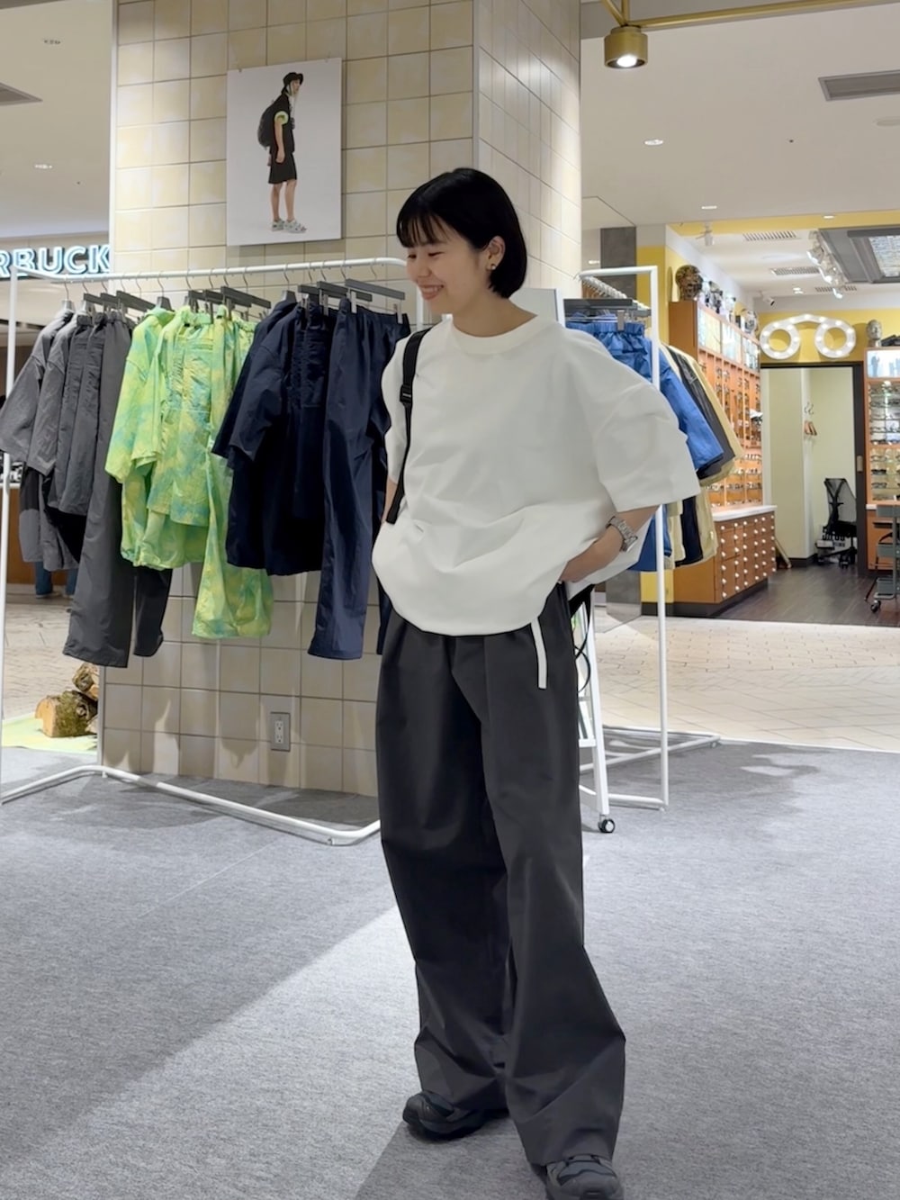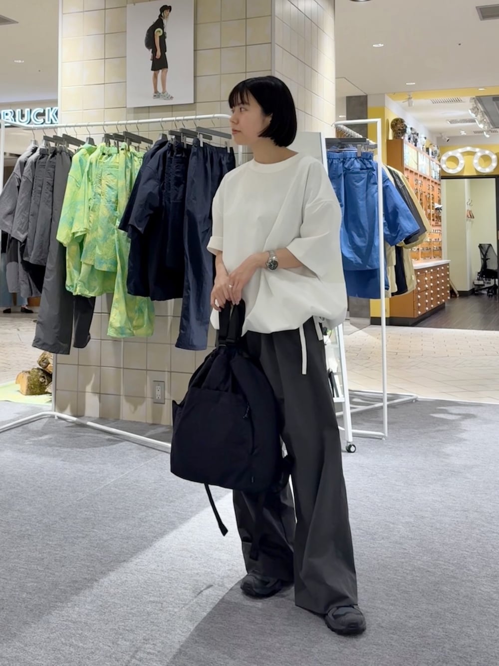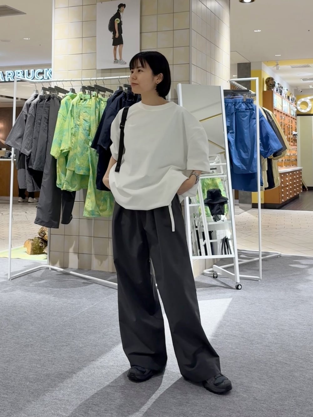 夏場は手首が見えてすっきり見えるので、上下ゆるっとでも意外と決まります!