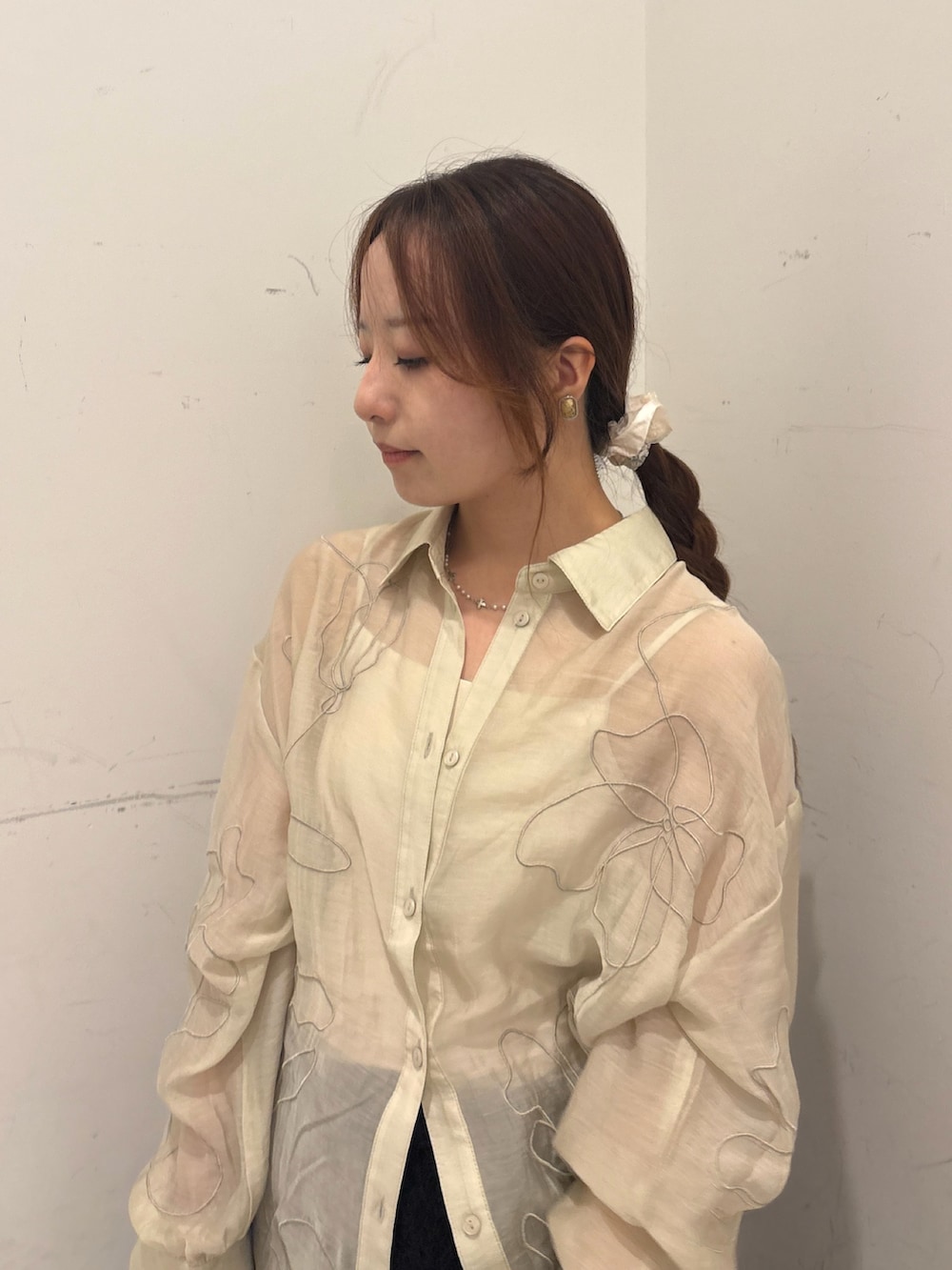 キャミ合わせが可愛いシシュウのシアーシャツになっております♪