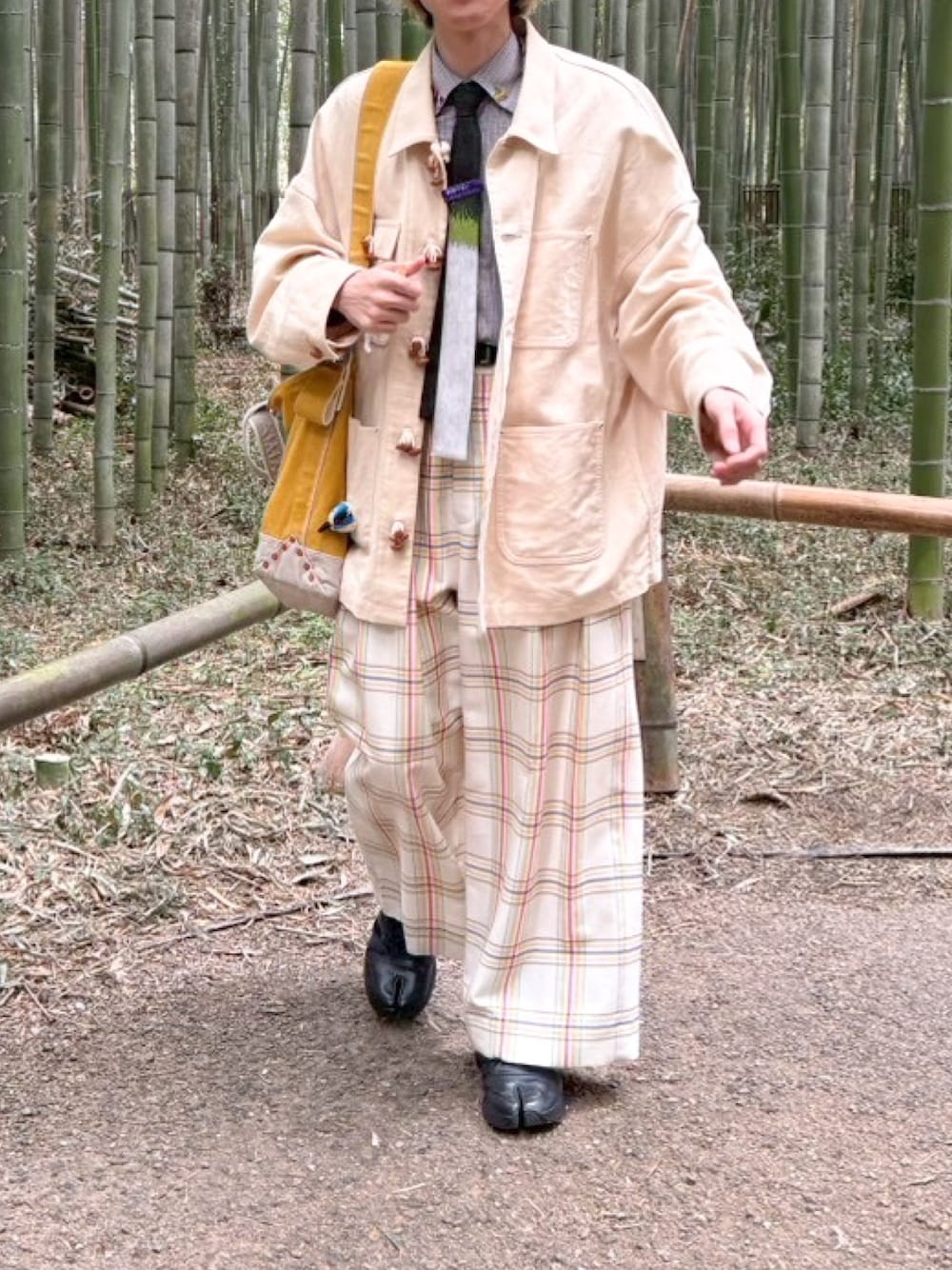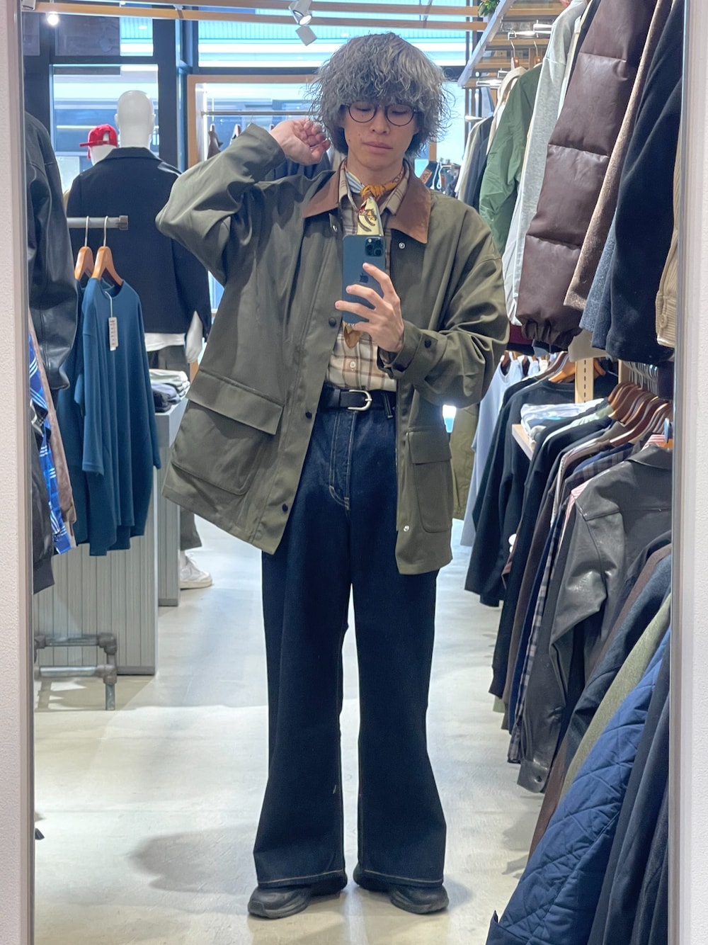 パンツはヴィンテージのような風合いで、タックがポイントになっておりワイドシルエットでもすっきり見えます。
