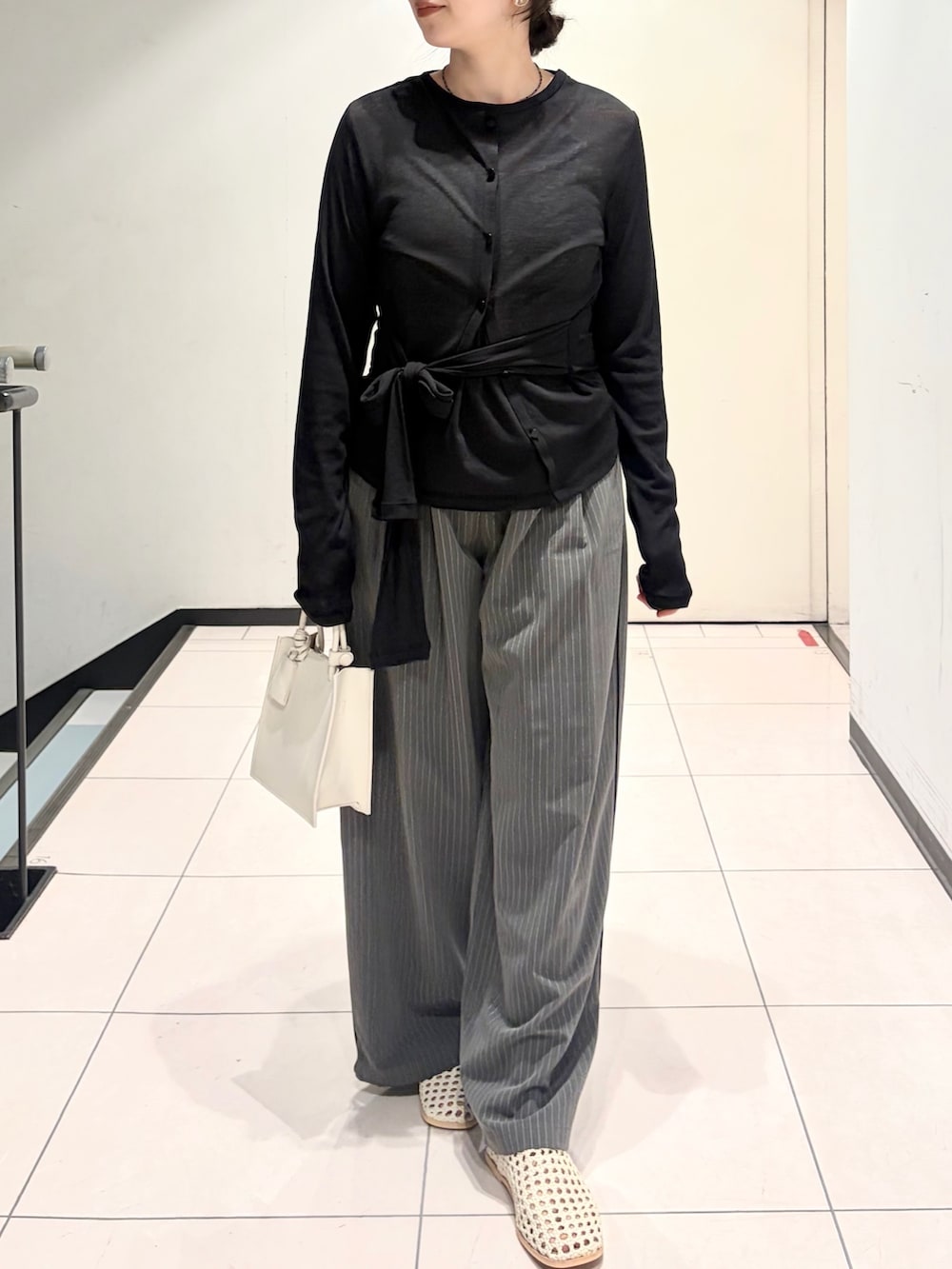 ダークトーンなので、白小物と大きめにリボンを結んで大人ガーリーな感じにしました!