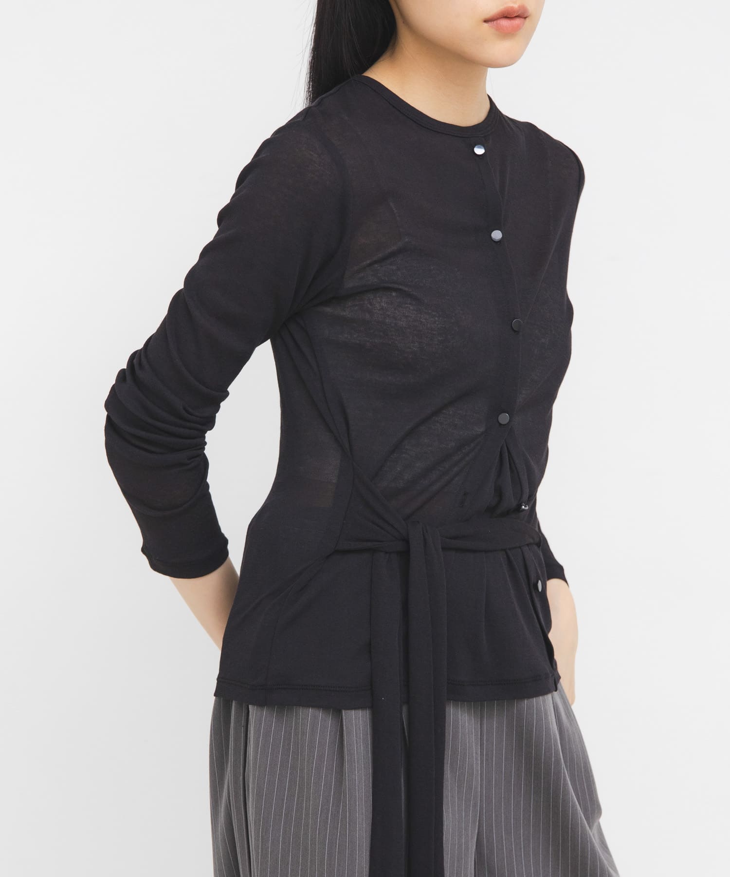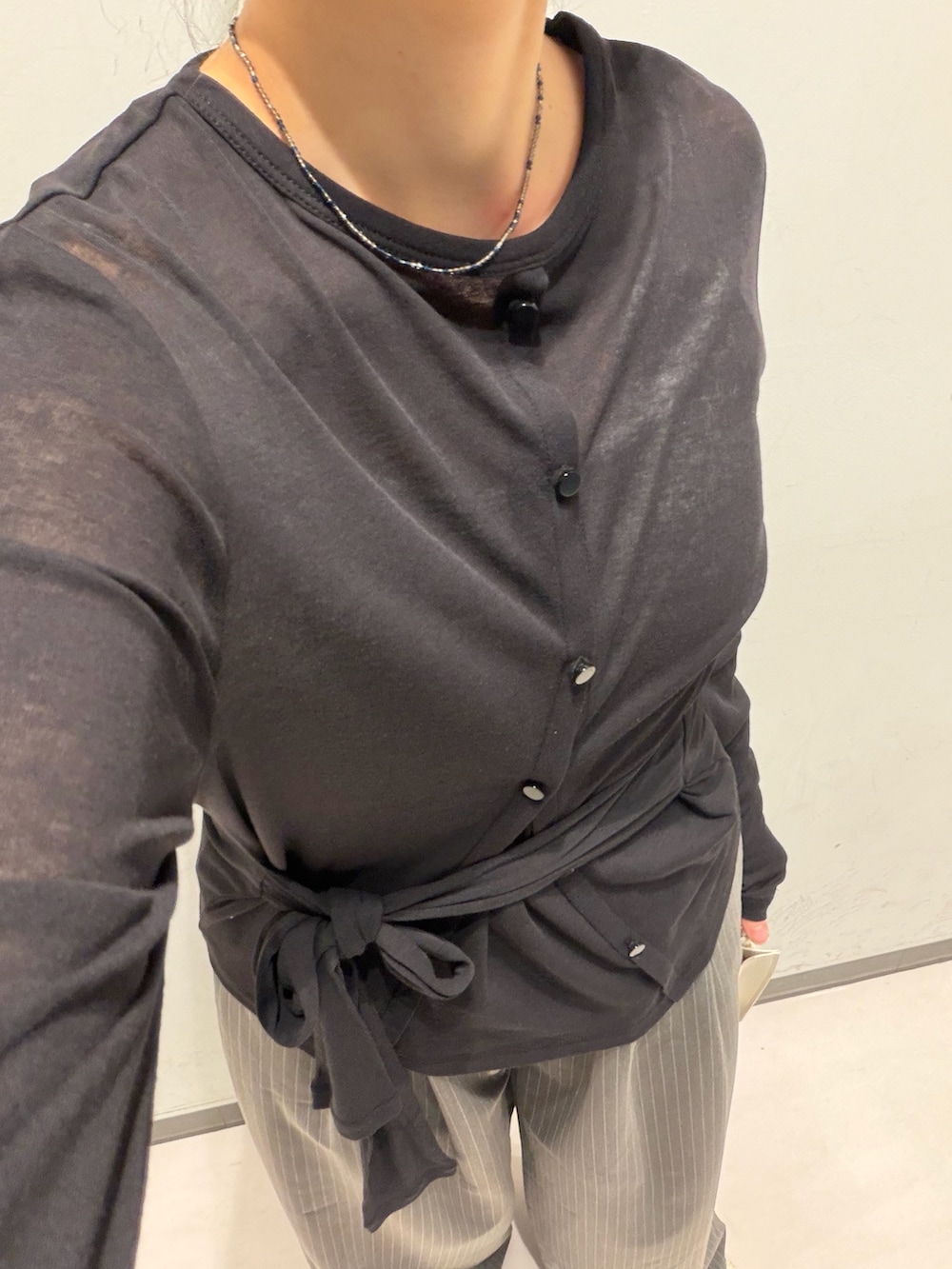トップスはシアーですが張り付く感じなく、腕周りも意外とゆったりしていて着心地よいです。