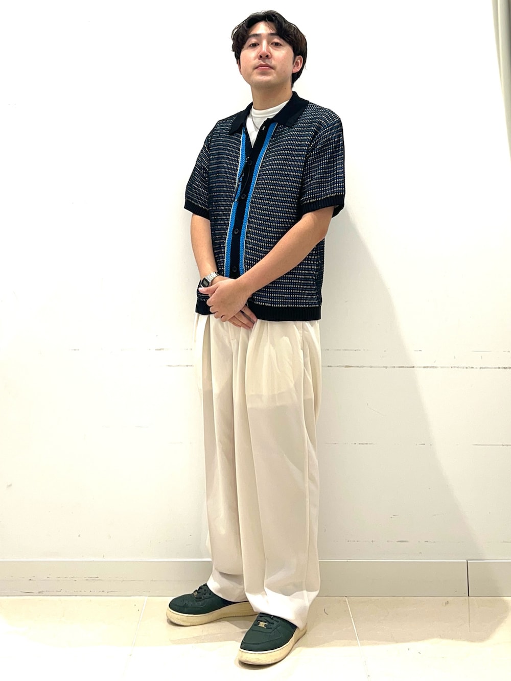 今回はポロシャツよりデザインチックな襟付きカーディガンをスラックスで合わせてみました。