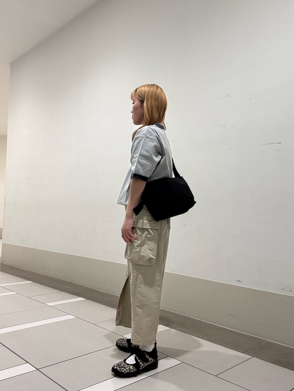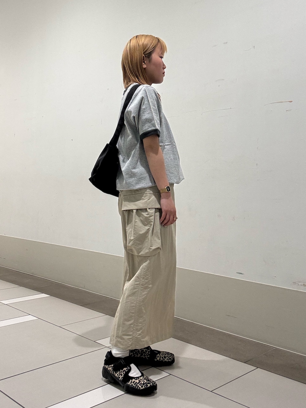 インナーはllbeanの半袖Tシャツでゆとりあるシルエットでリンガーデザイン可愛いです‼️