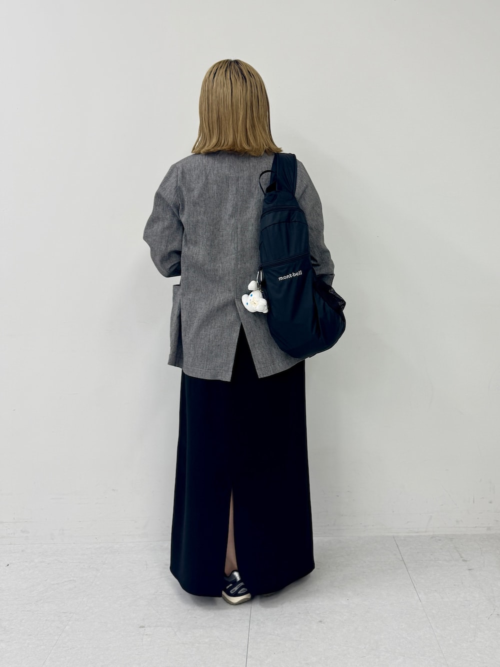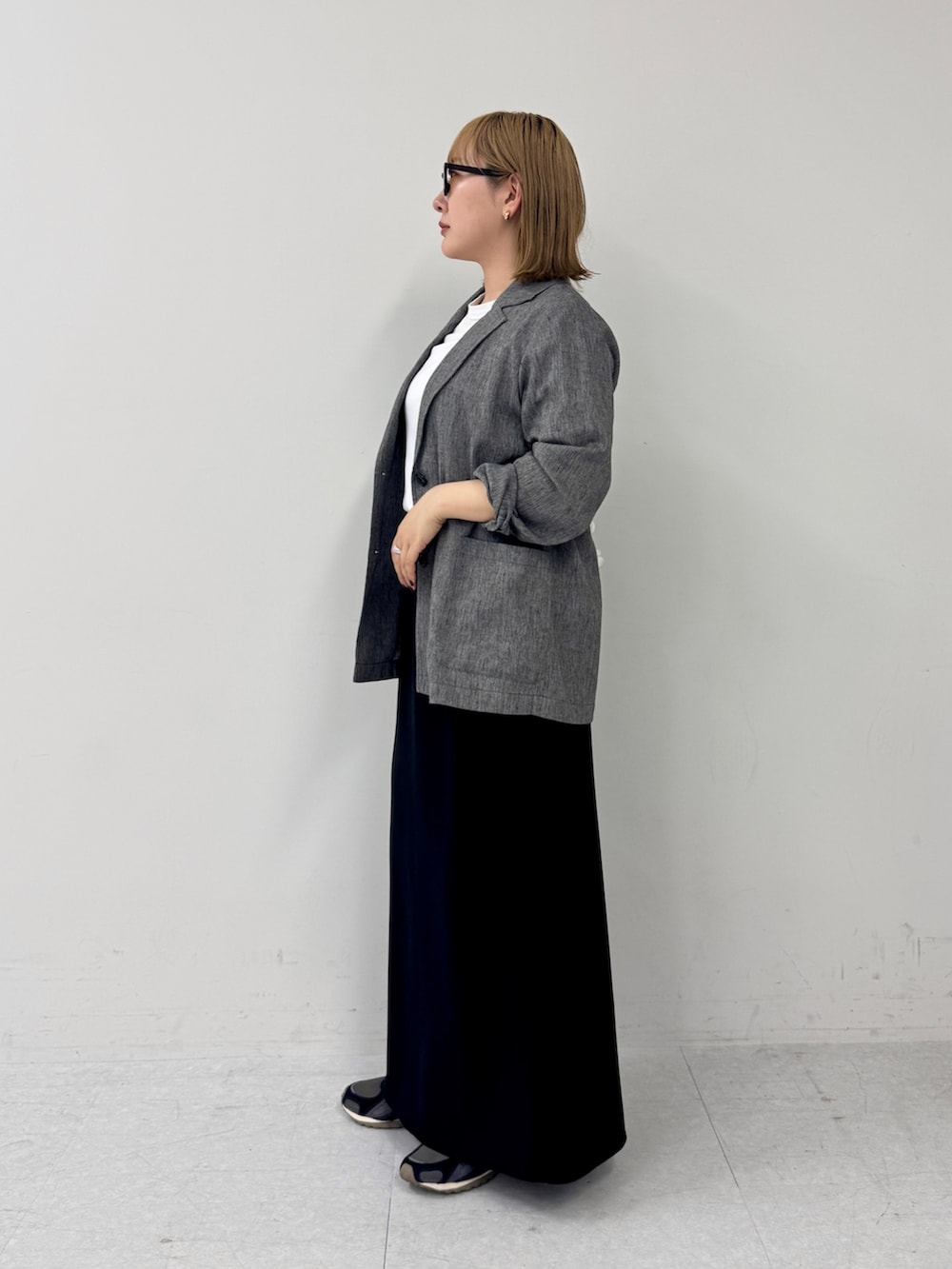 ジャケットに、すとんとしたシルエットのスカートを合わせて女性らしさをプラス◎