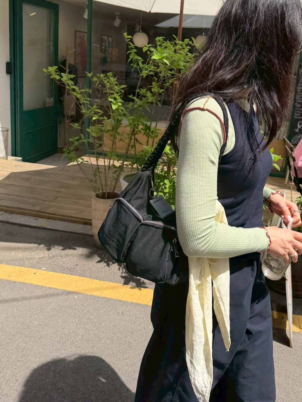 blackも少し光沢があるのでカジュアルなスタイルにも合わせやすく、春夏コーデにも重くなりません。