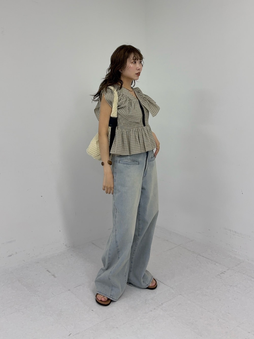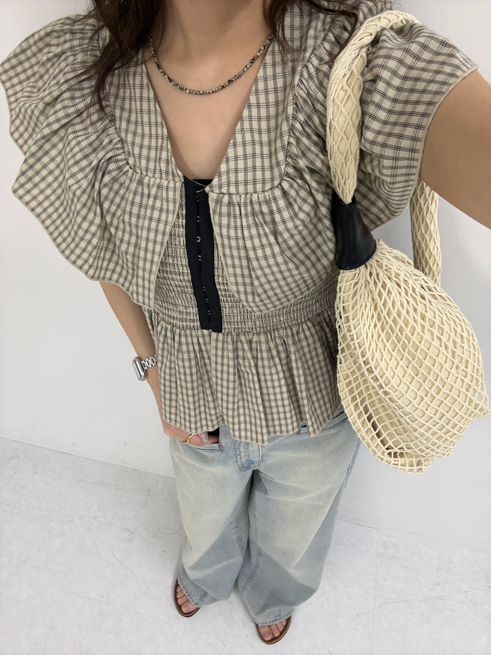フリルのデザインが可愛い新作のブラウスを使ってカジュアルコーデを組みました!