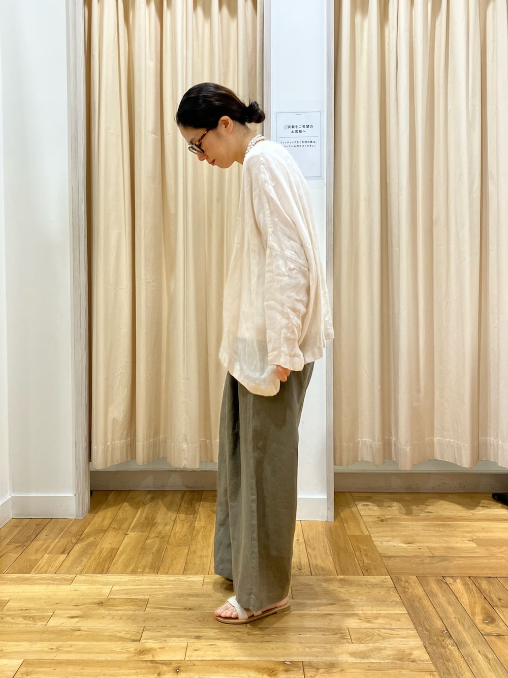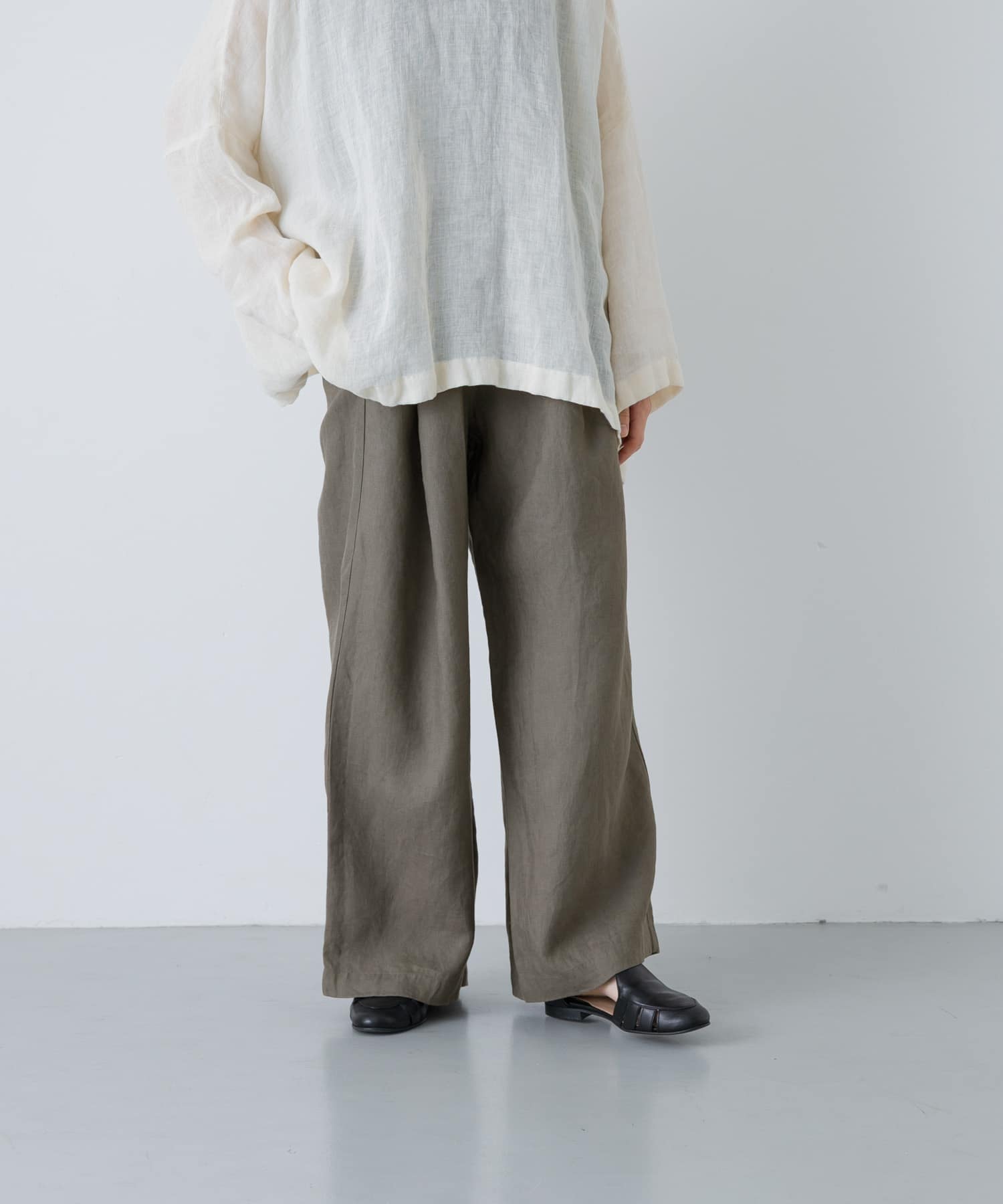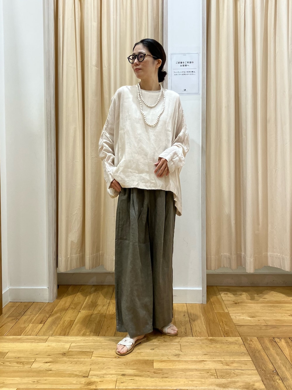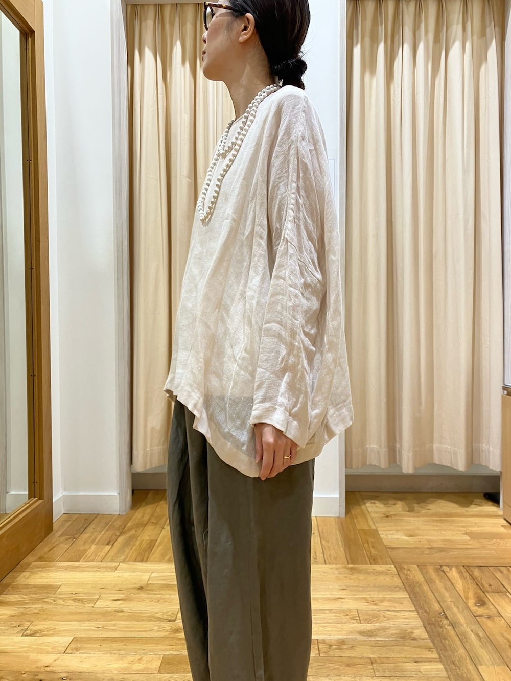 淡いピンクが魅力的なリネンボイルワイドプルオーバー。長袖ですが夏場も涼しく着れる一枚です。腕が長い私でもしっかり袖がありました◎袖はロールアップしても可愛いですよ。