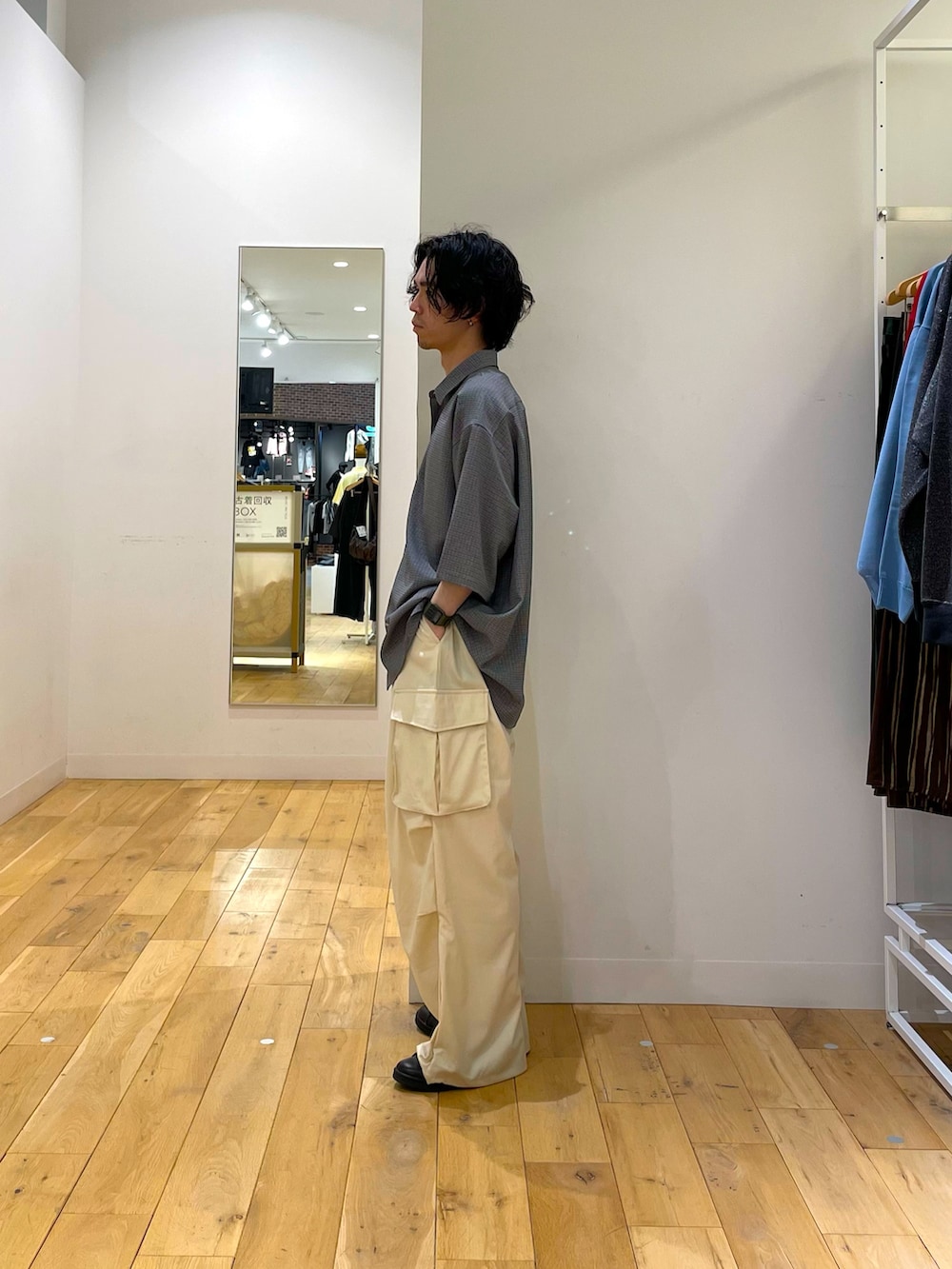 サイズ感、デザイン共に子供っぽくなりそうなシャツですが、細かいチェック柄の為、いいバランスです。
