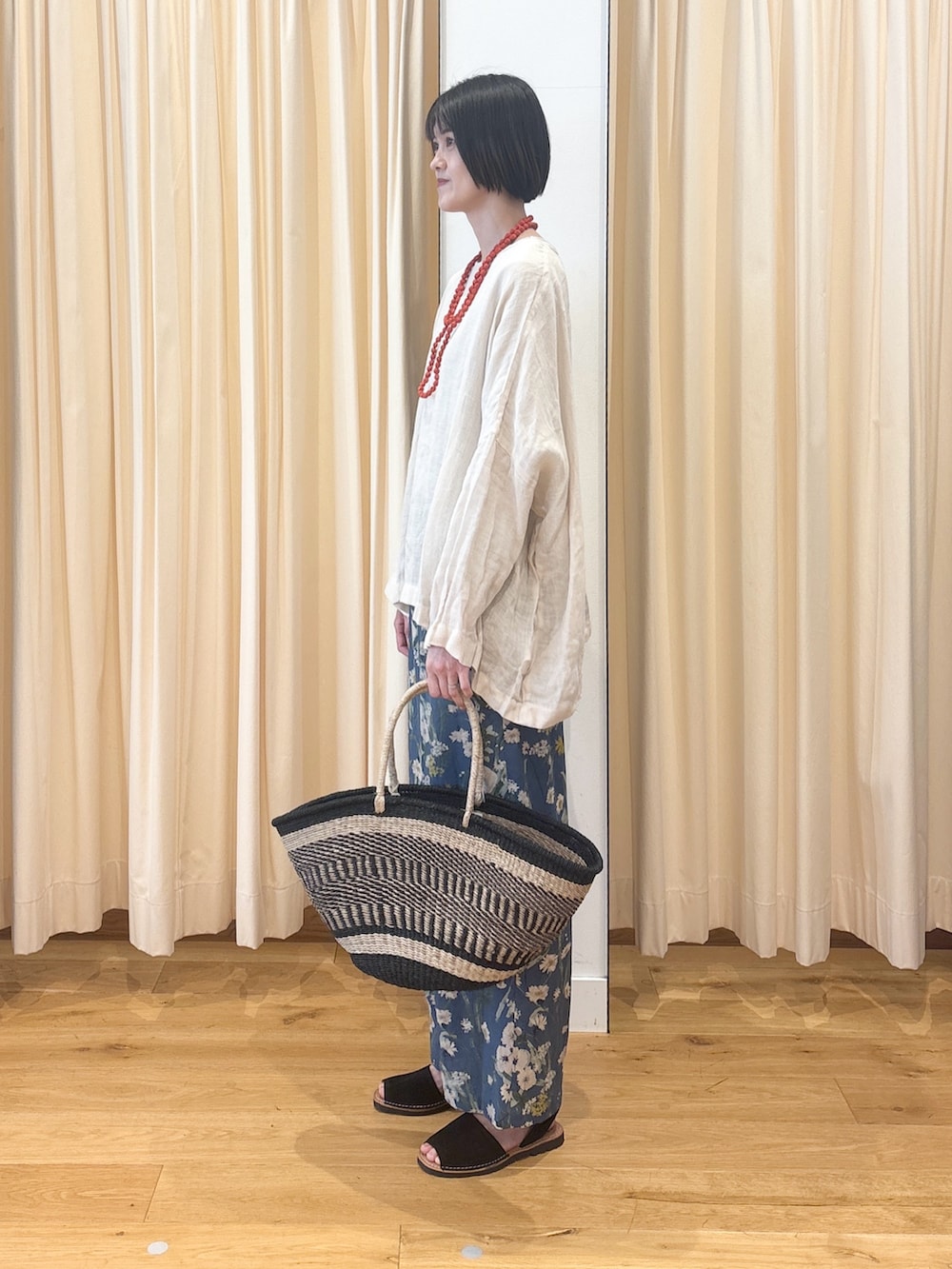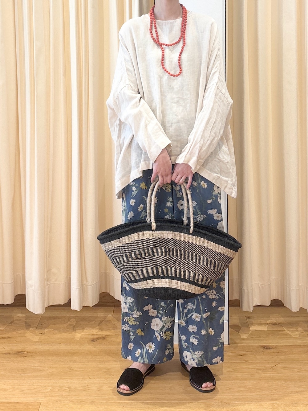 かぐれコットンリネンプリントイージーパンツ- カラー: