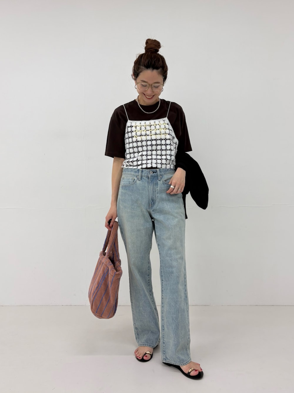 アジャスターで調節可能なインナーワンピース付きで、透けも気にせず一枚でもさらっと着るのはもちろん、パンツをレイヤードするとよりこなれ感が✨
