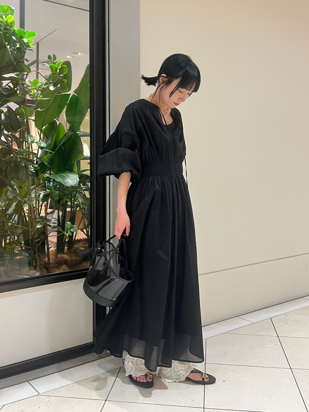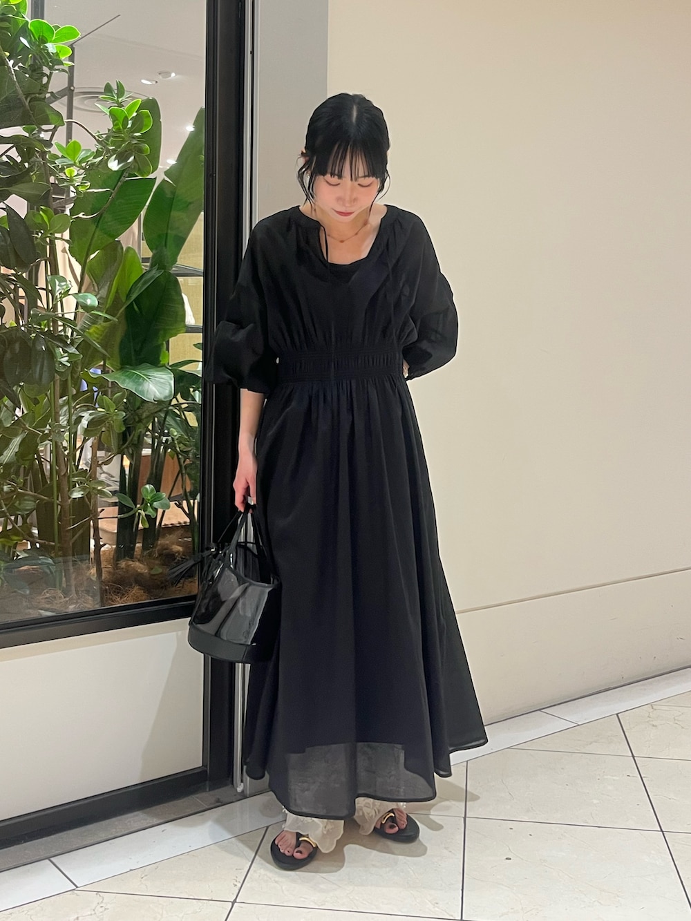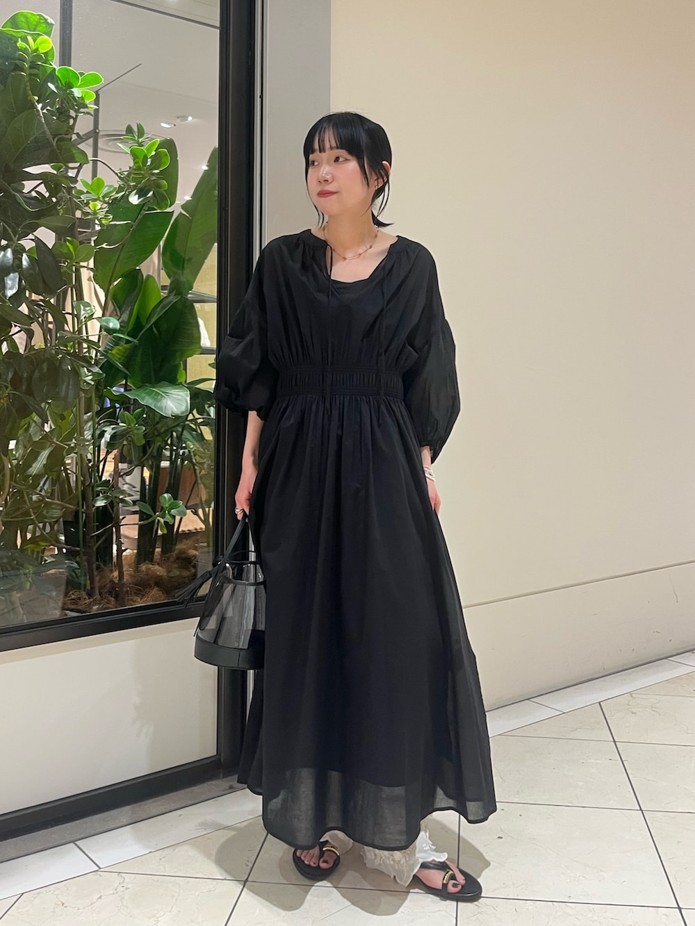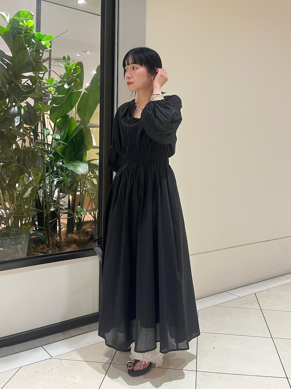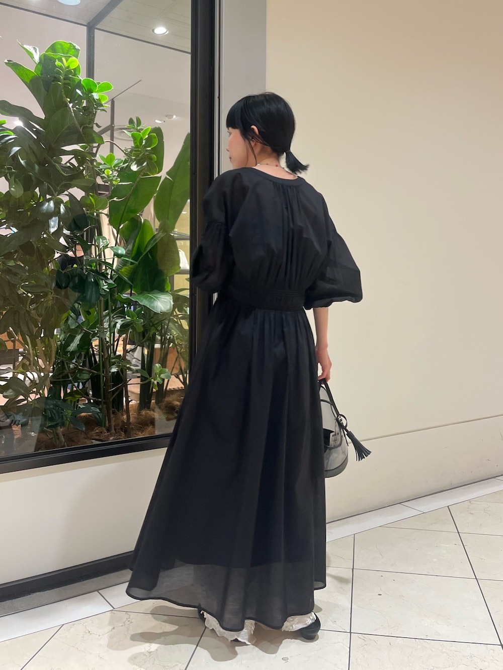 ウエスト部分のシャーリングデザインがメリハリをつけてくれはので、自然とスタイルアップし、低身長さんも重たくならずに着ていただけます◎