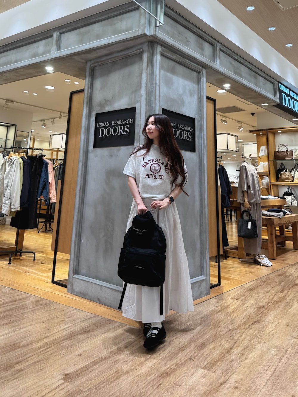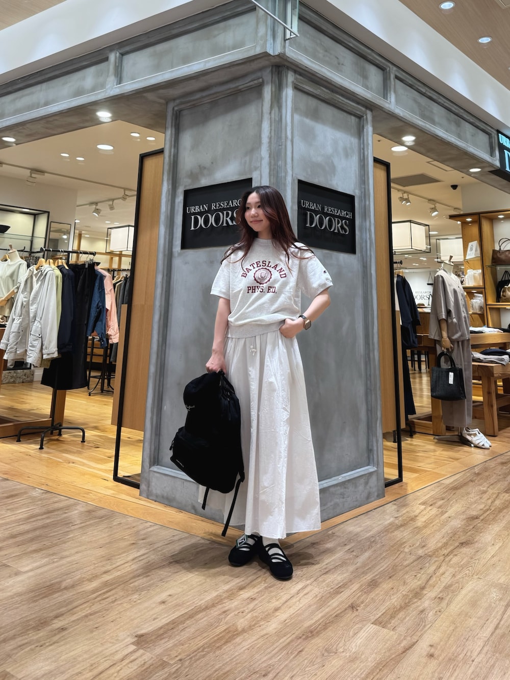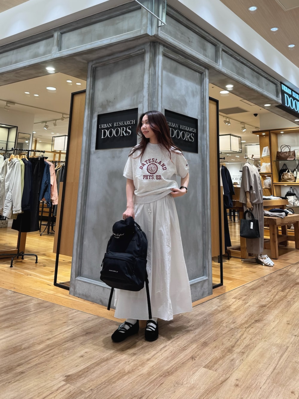 シンプルなTシャツだけでなく、ブラウスなどのアイテムとも相性が抜群なスカートです🍀