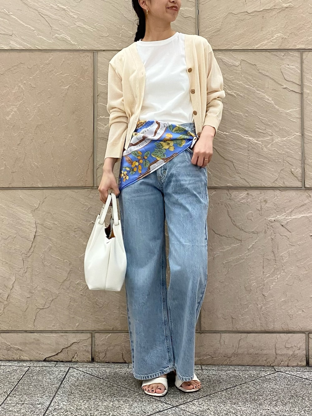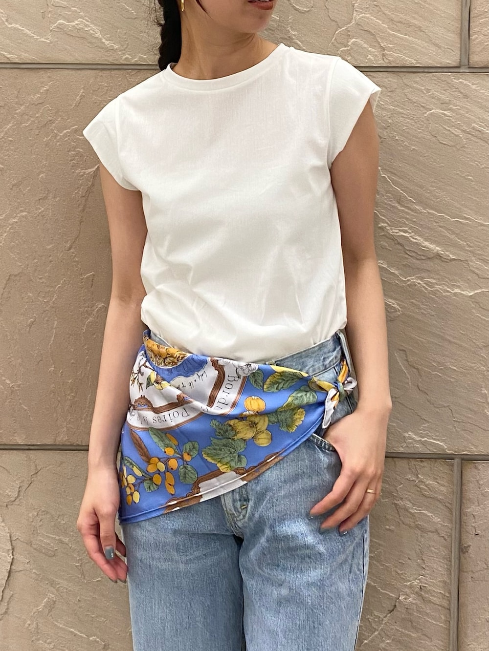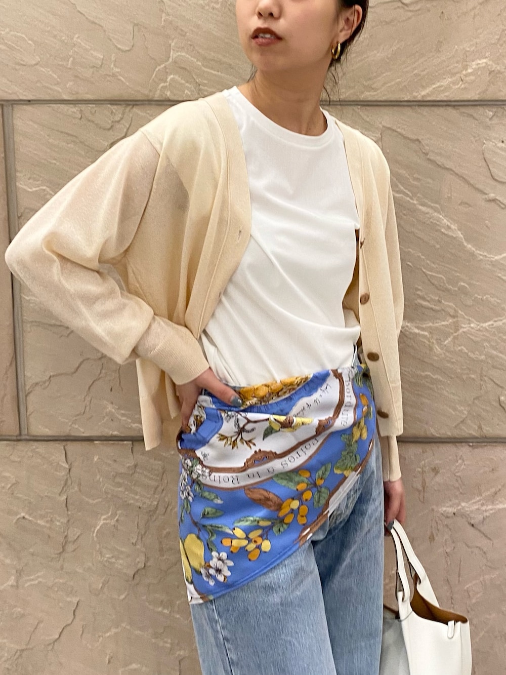 フルーツがたくさん描かれているスカーフの