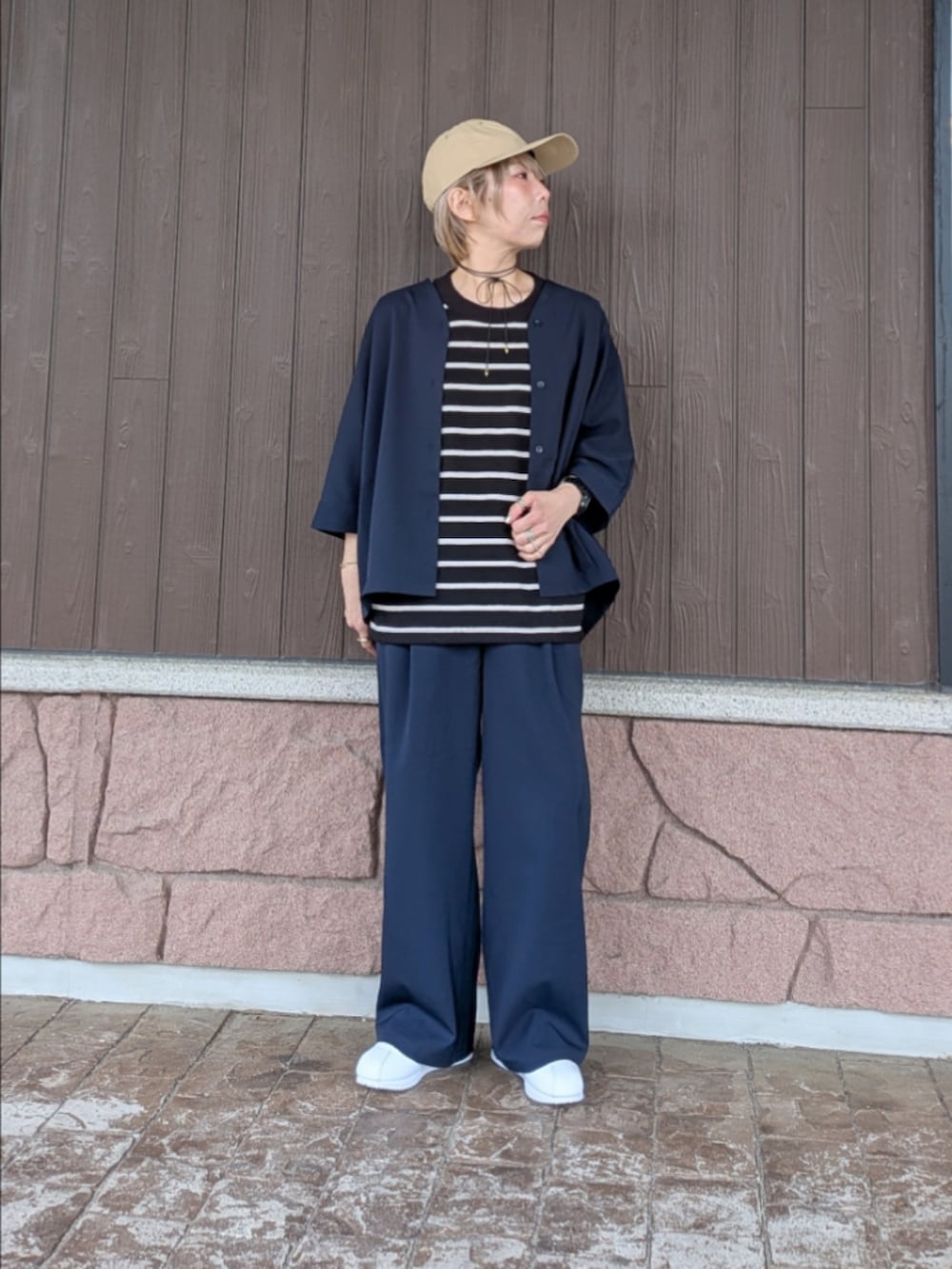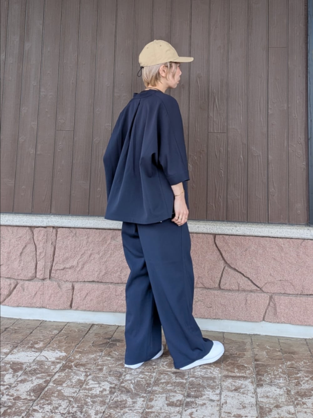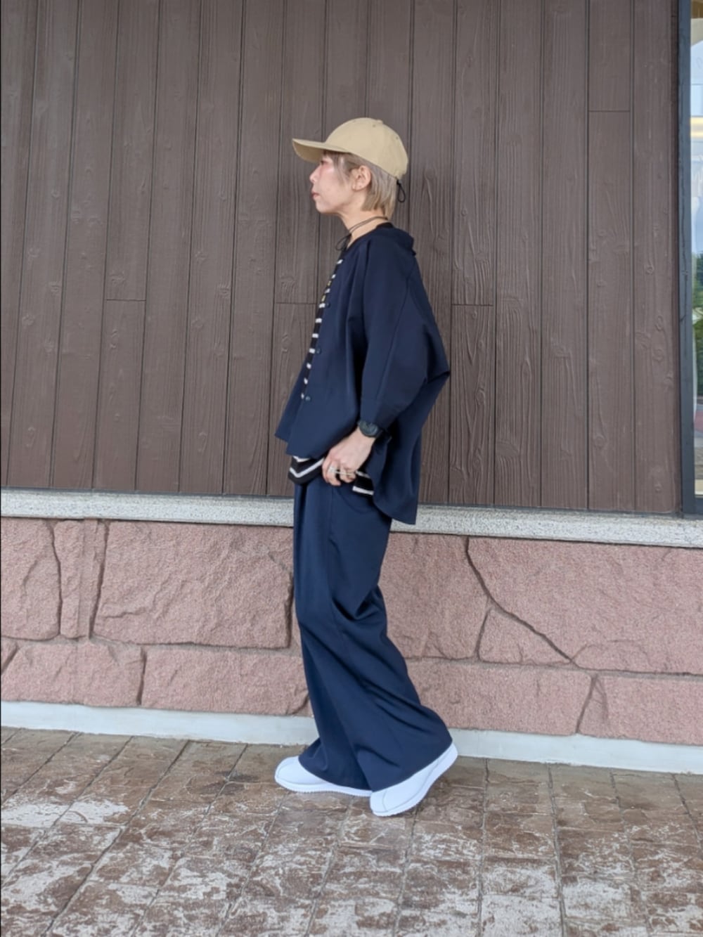 スニーカーで着崩してラフなスタイリングにしてみました。