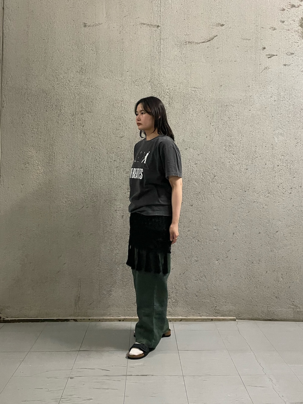 ごちゃっとしたバランスも楽しみつつ、素材感が際立つ組み合わせに。