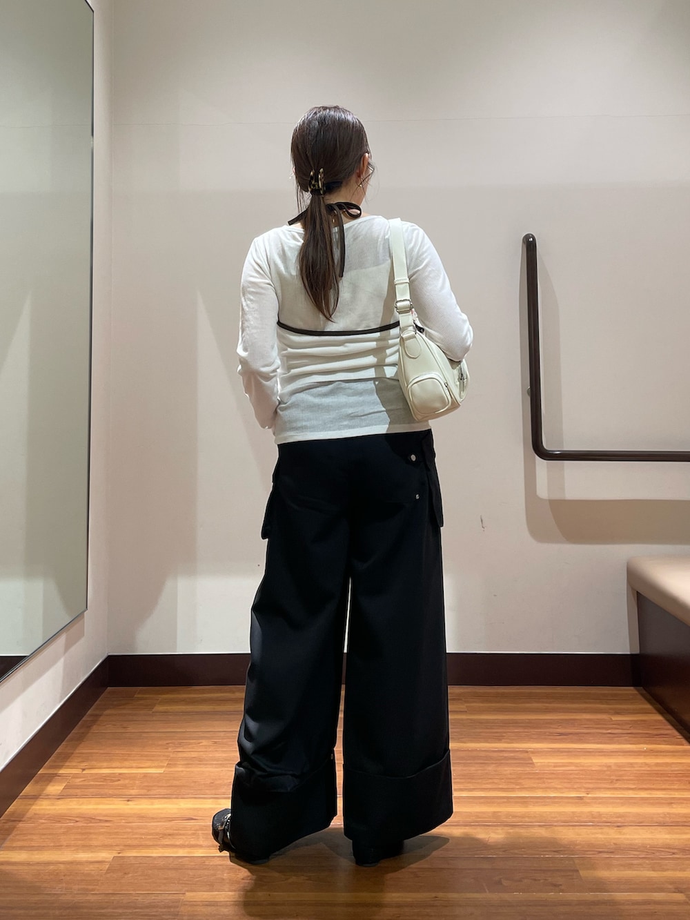 ロールアップデザインでサイドにポケットがあるのがポイントです✨