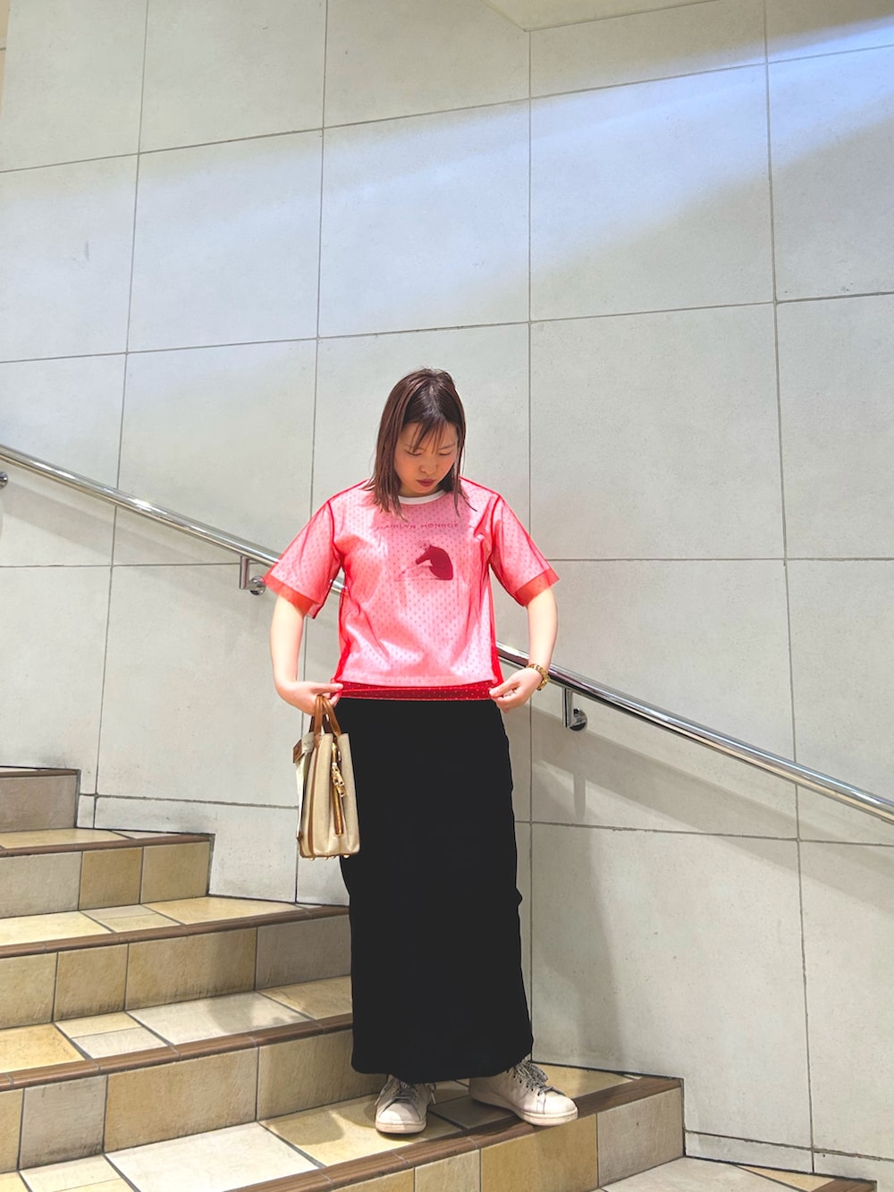 Tシャツを主役に黒のIラインスカートで大人っぽく引き締めたコーデにしました♪
