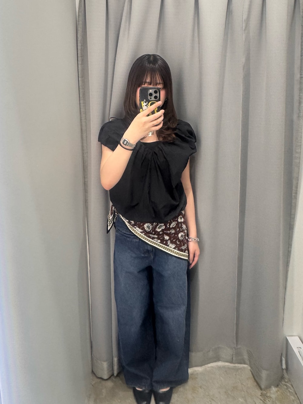 ボトムスのデニムの色味が可愛いです!明るいトップスでも暗いトップスでも合わせていただきやすいと思います🫶🏻