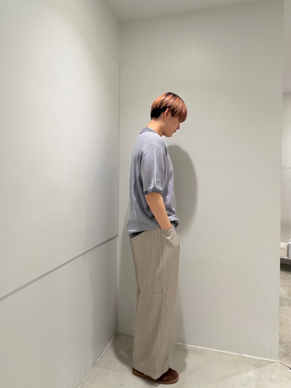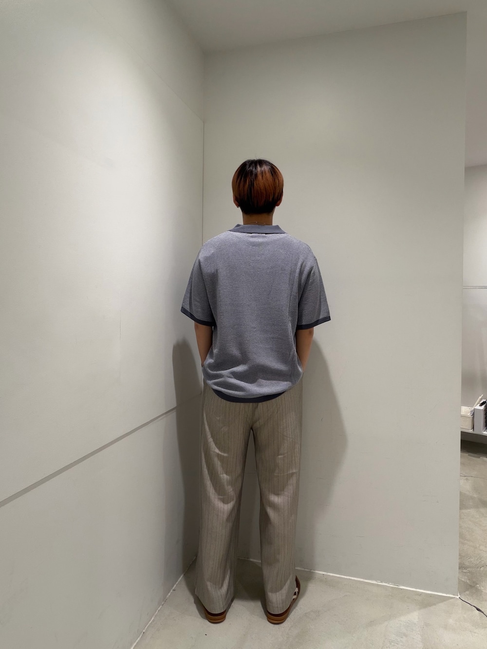 このトップスは襟があることでカジュアルに見えますし、襟の色が違うところもポイントです!