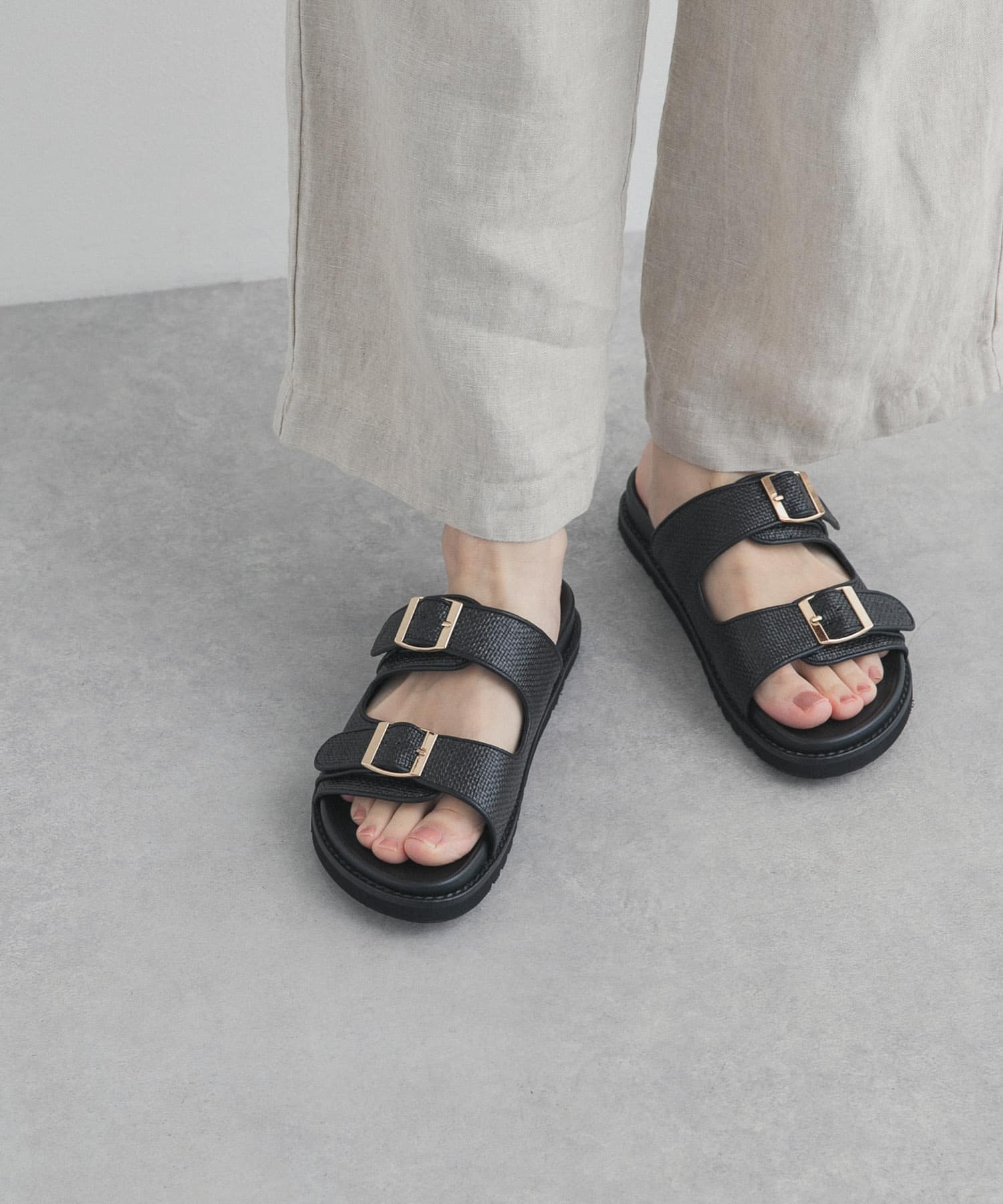 ダブルベルトプラットフォームサンダル
