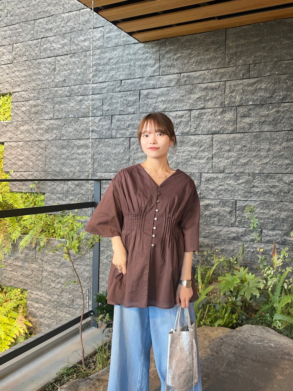 トップスは、コットンボイルタックデザインブラウスです!ウエストに細かいタックが入った