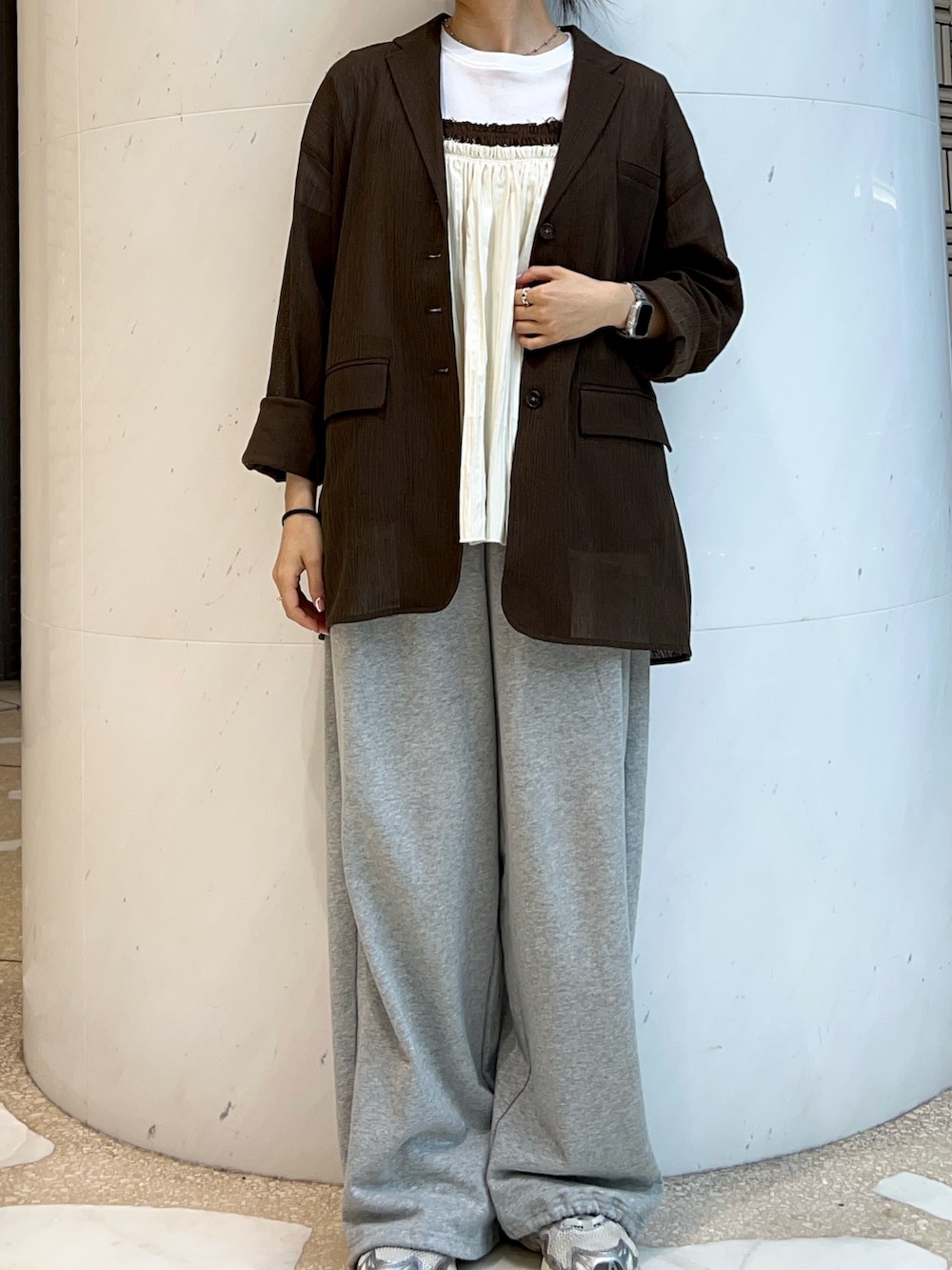 ジャケットは、程よい透け感があり身体のラインを拾い過ぎないので、どんなコーデにも馴染みます♩