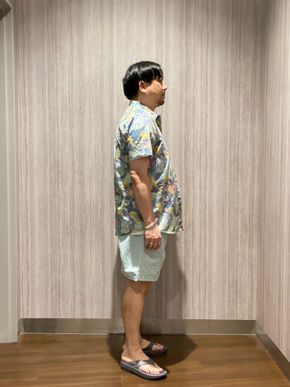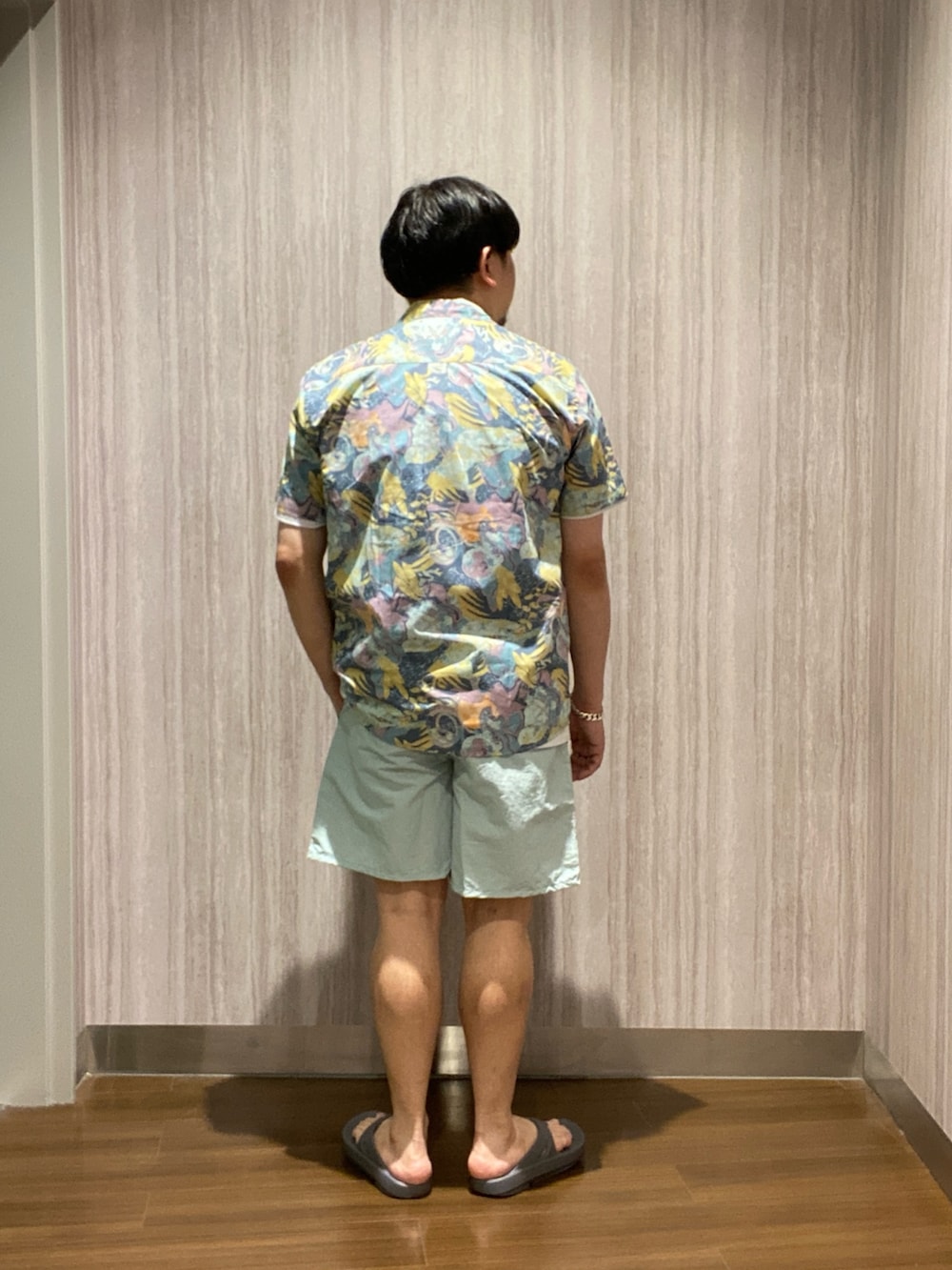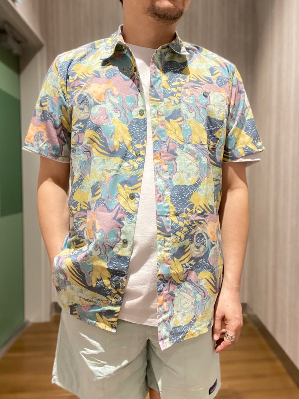 今回着用のシャツはパタゴニア定番のシャツで、クセのないシルエットですが派手な柄が目を引きます!