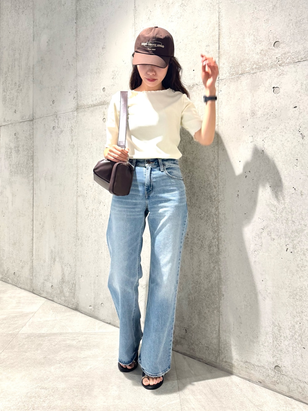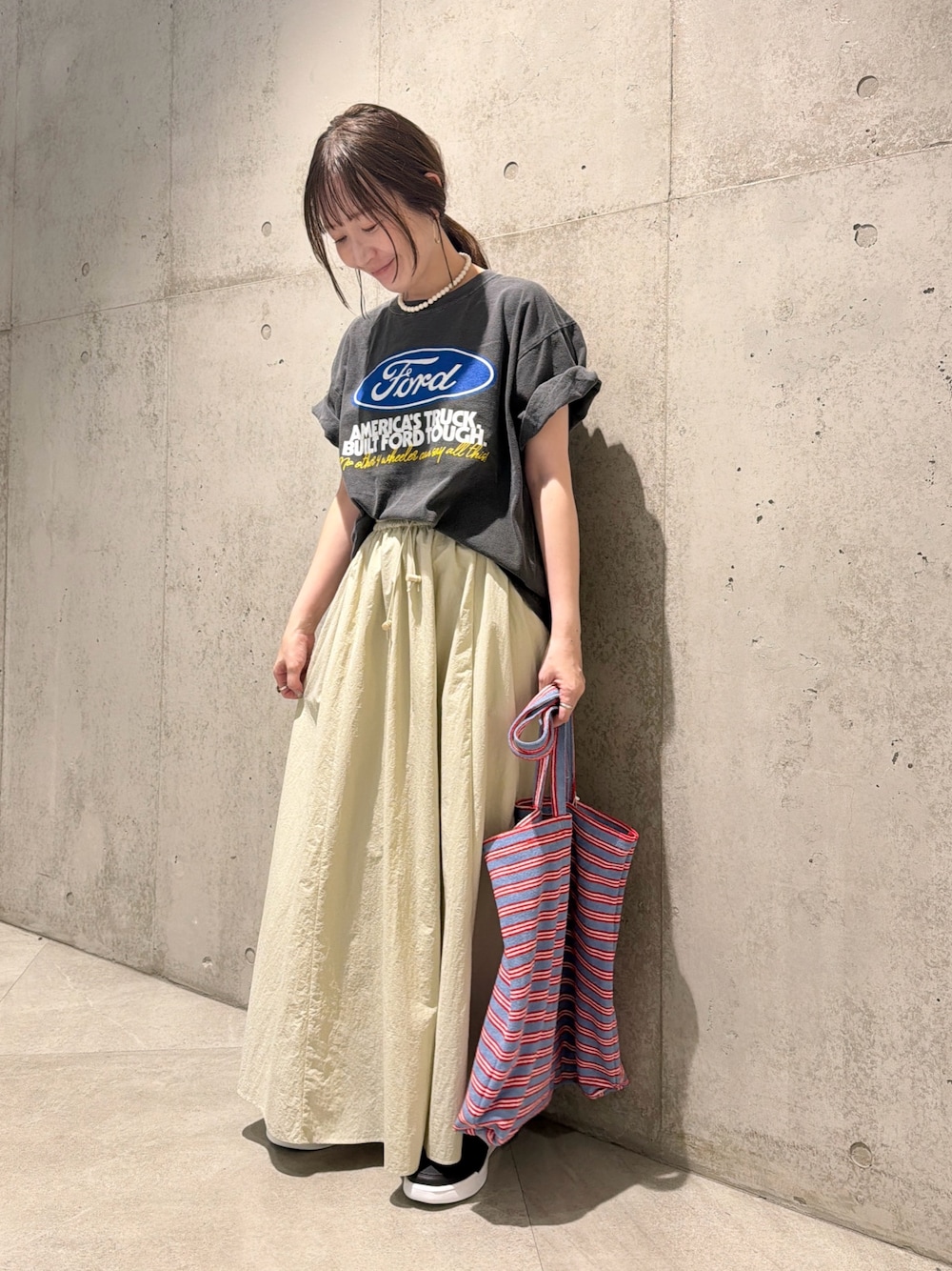 今回は、半袖のTシャツでシンプルに合わせてみました。