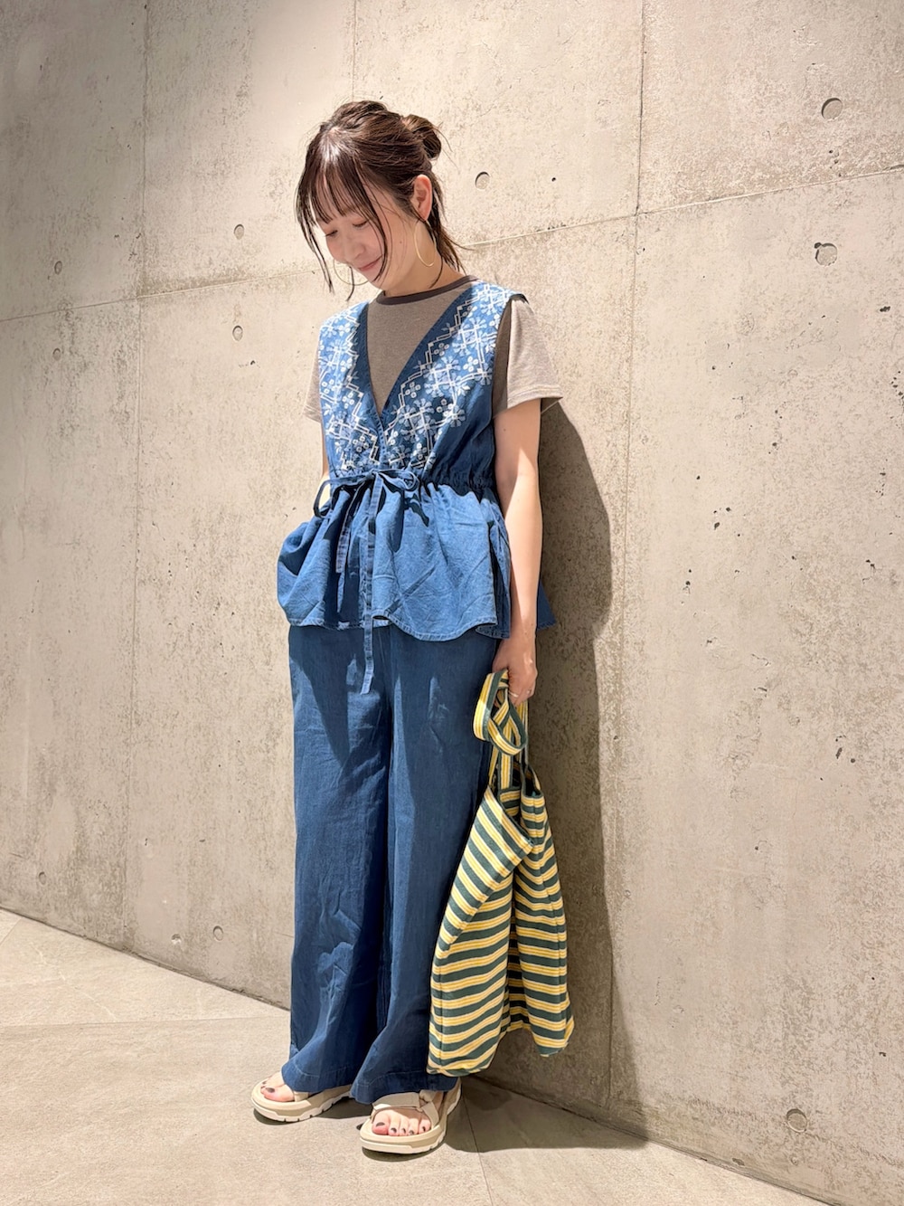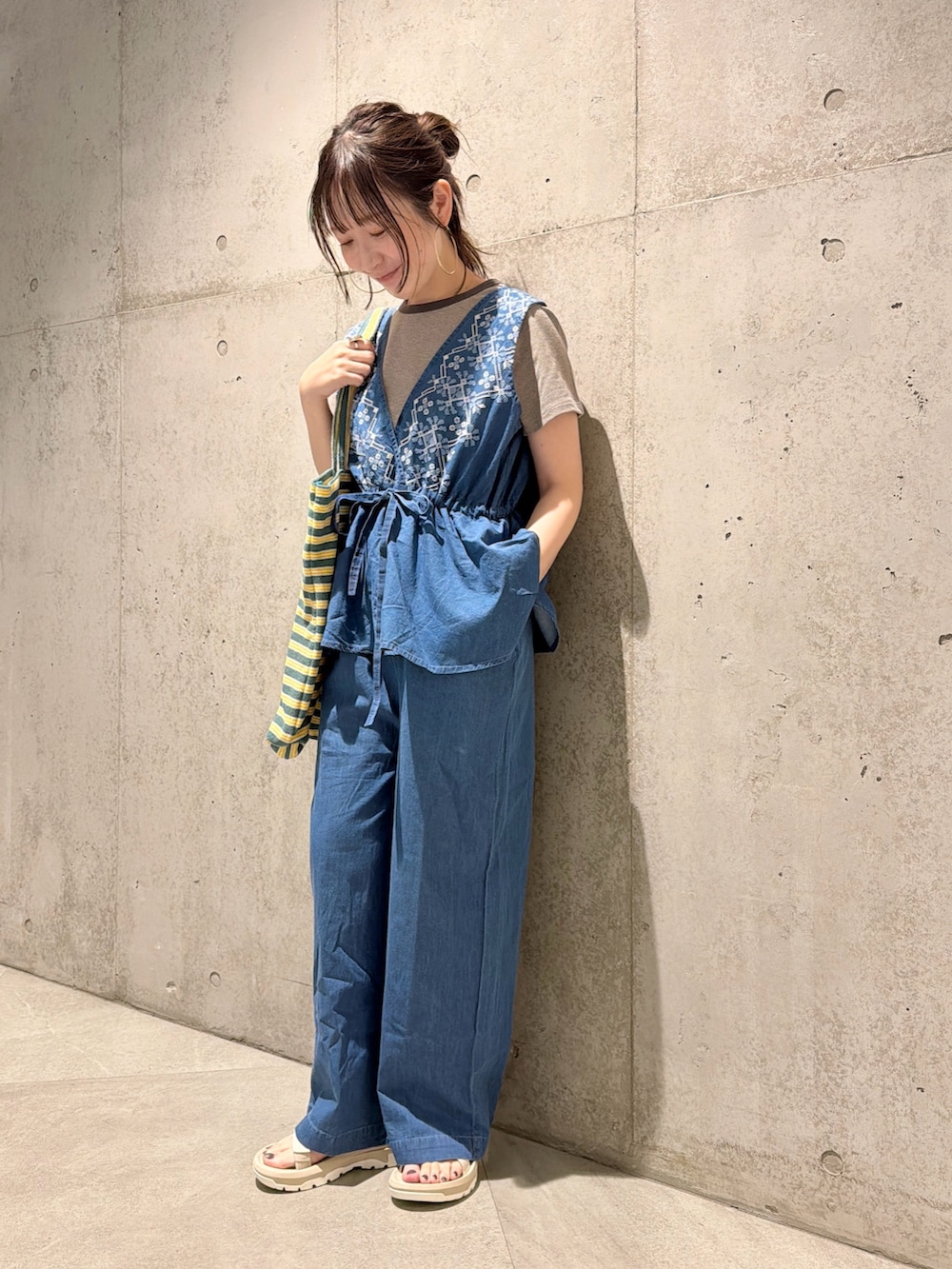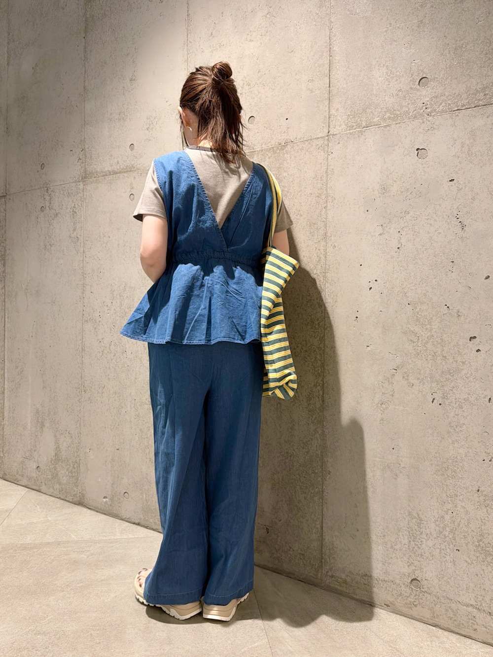 柔らかなデニム素材と深めのVラインで甘すぎず、大人カジュアルな雰囲気のアイテム。