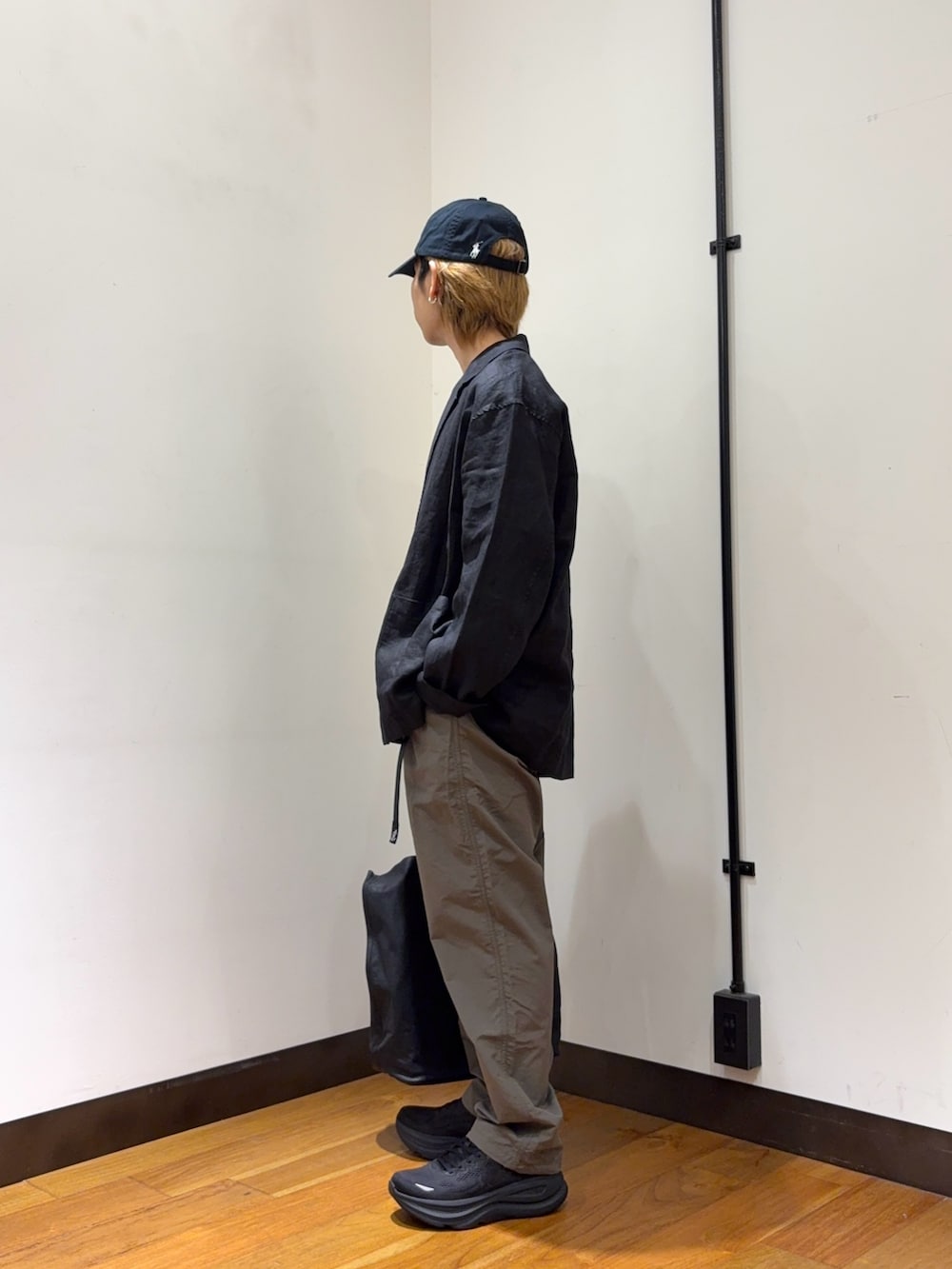 HOKA ONE ONEのスニーカーやGramicciのパンツでアクティブにしつつ、リネンのジャケットでキレイめにまとめる、中和を意識したシティボーイコーデを組んでみました。
