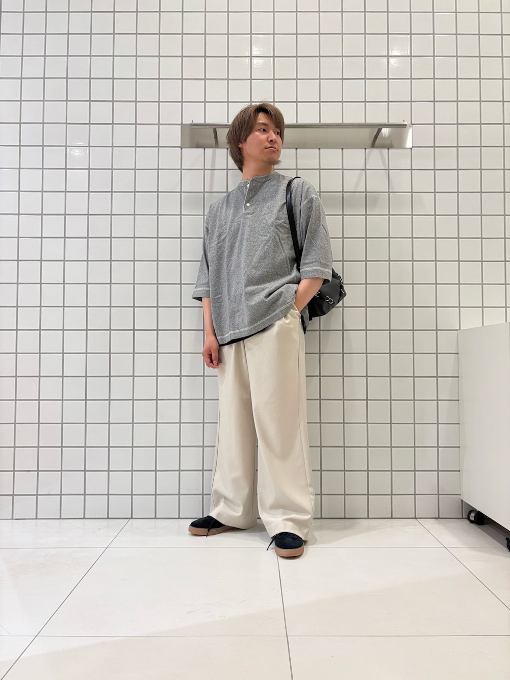 シャツ×スラックスと合わせてモードな雰囲気の着こなしにしてみました!