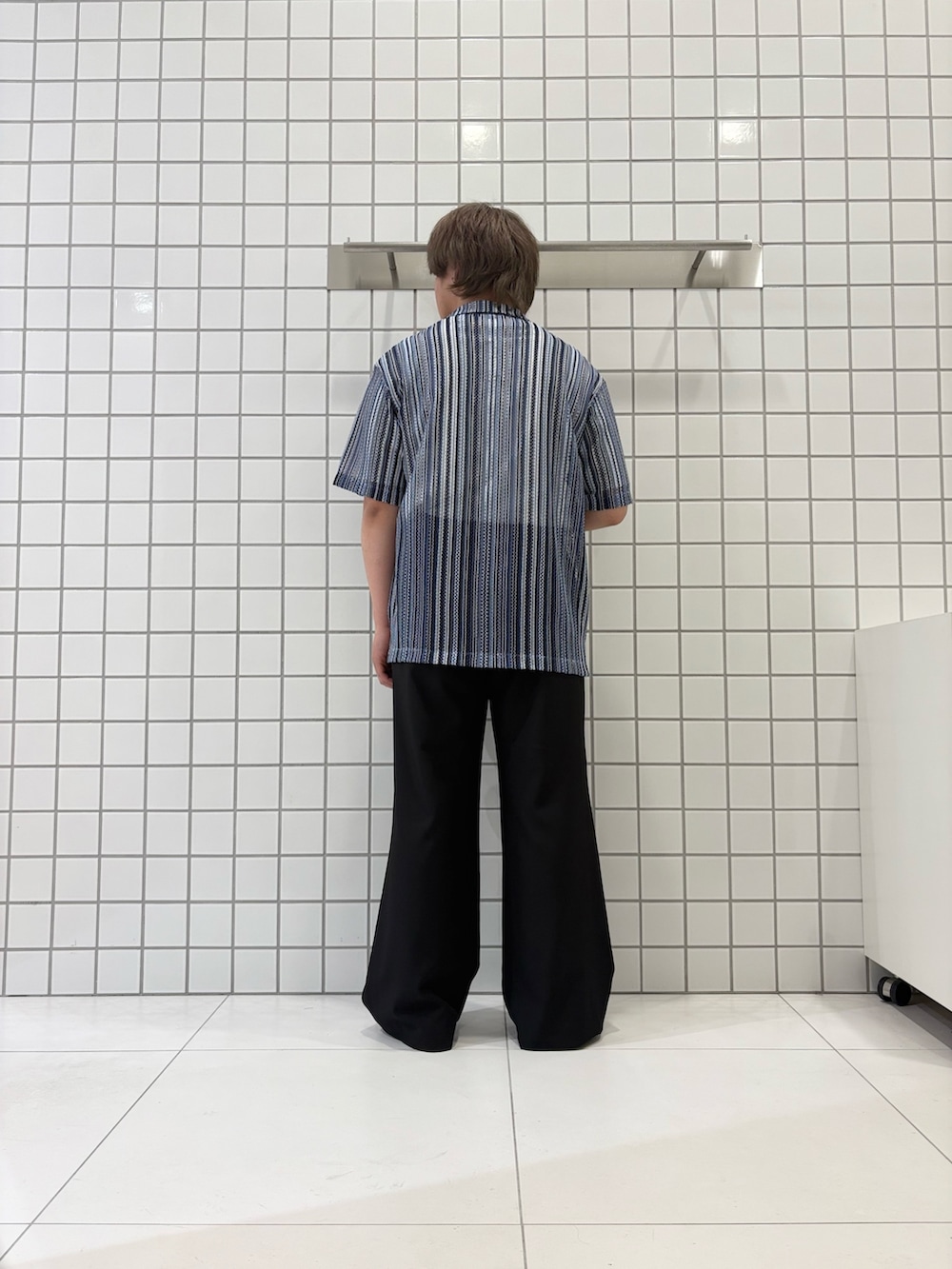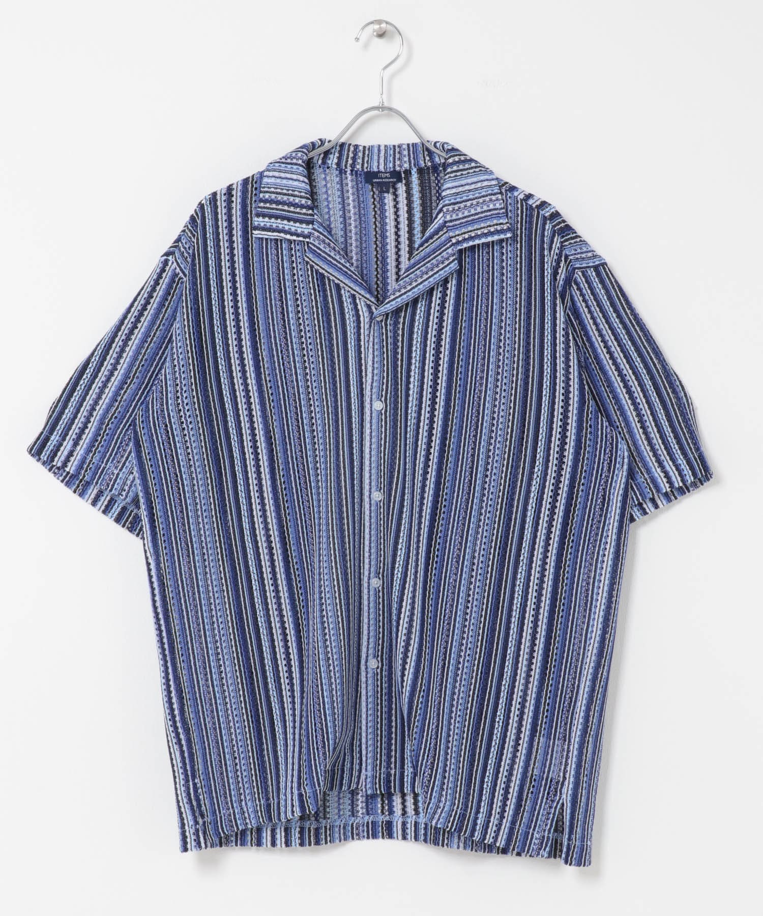 ITEMSマルチストライプレースオープンカラーショートスリーブシャツ- カラー: