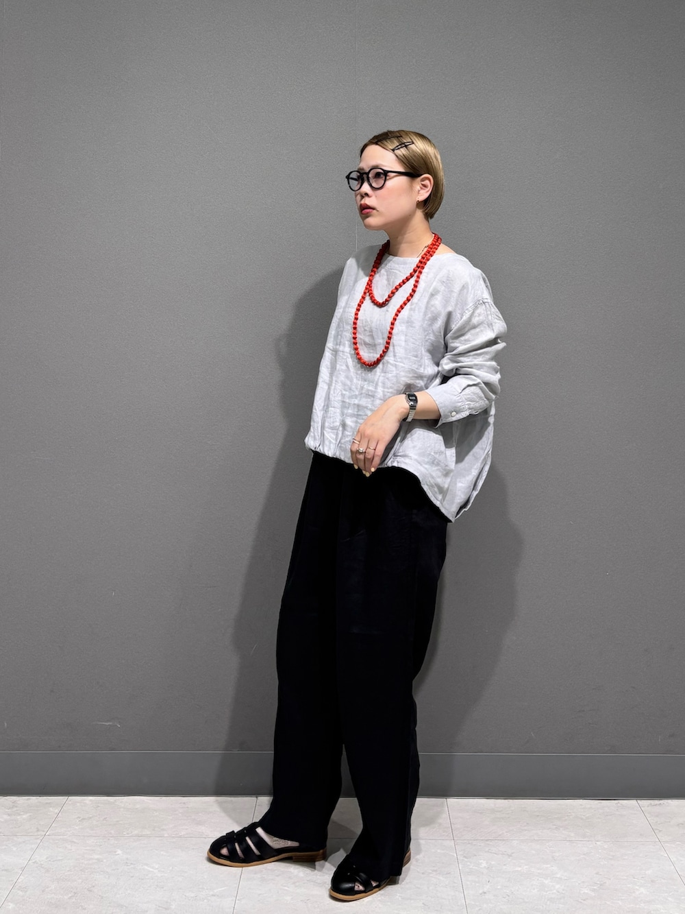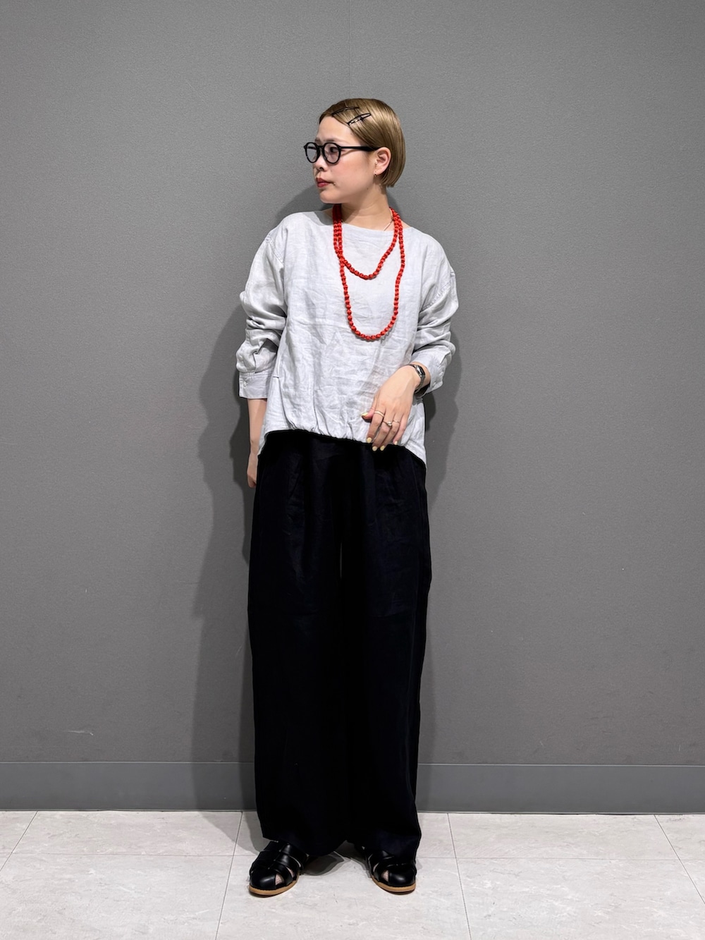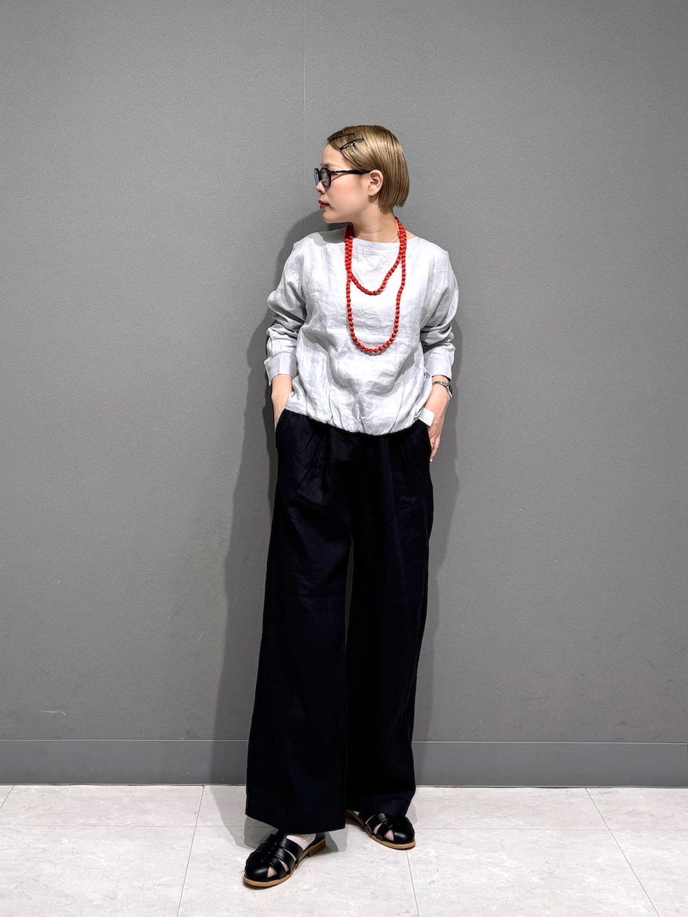 ワンポイントでアクセサリーも。